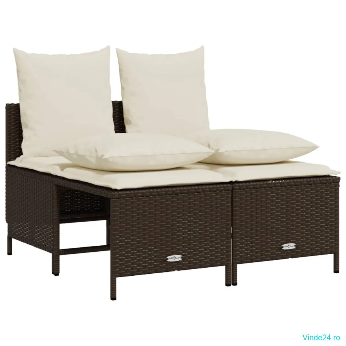 vidaXL Set canapele de grădină, 4 piese, cu perne, maro poliratan maro