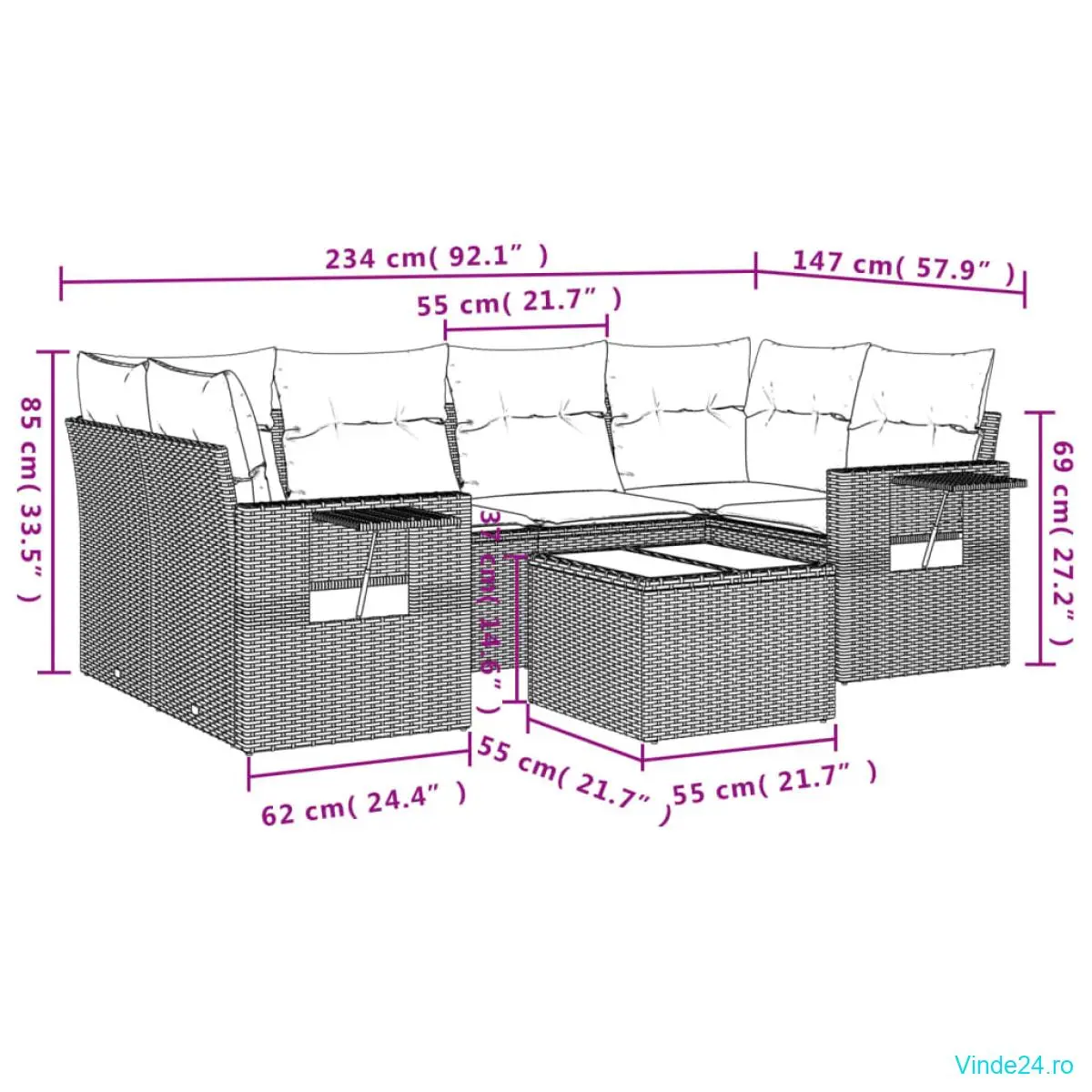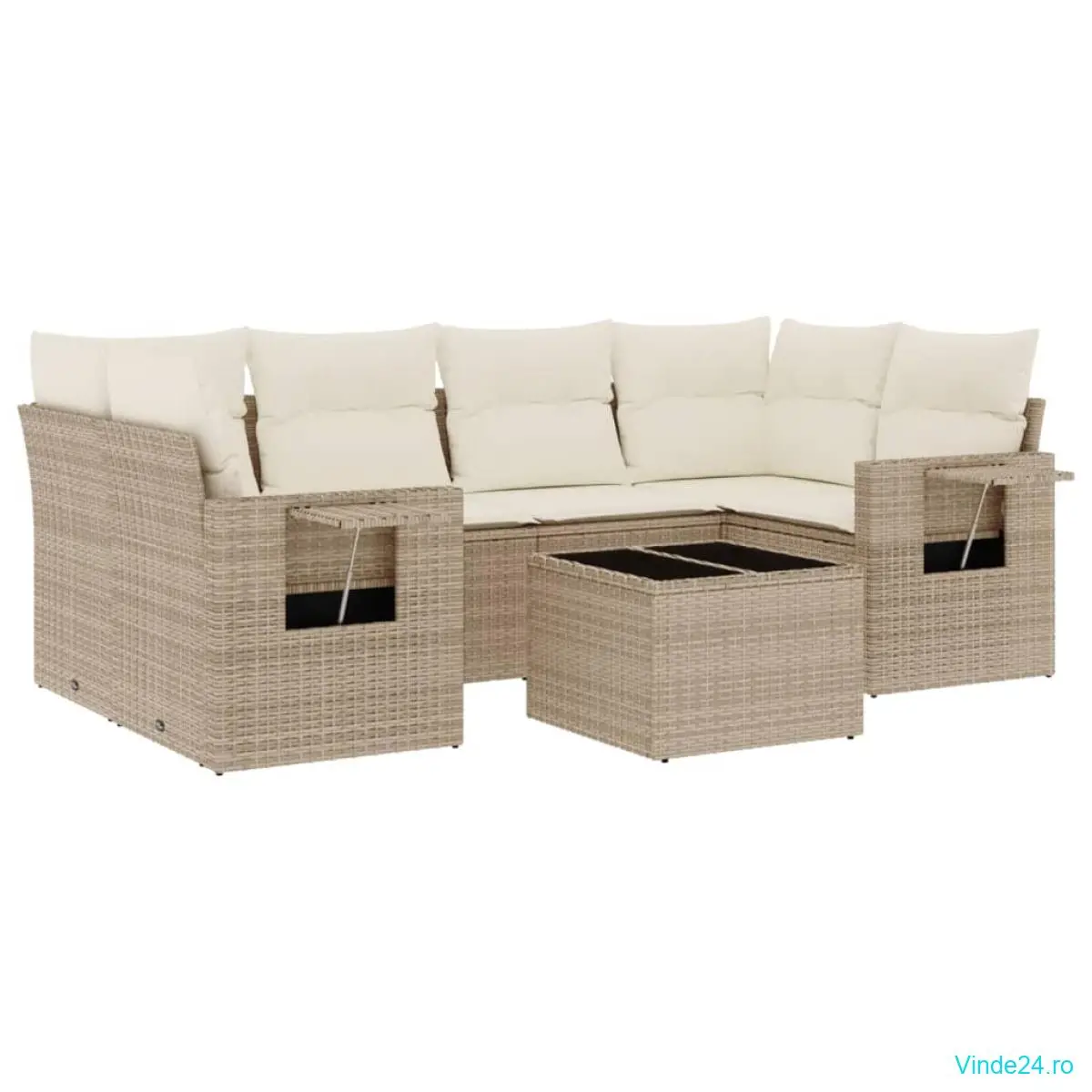 vidaXL Set canapele de grădină, 7 piese, cu perne, bej, poliratan