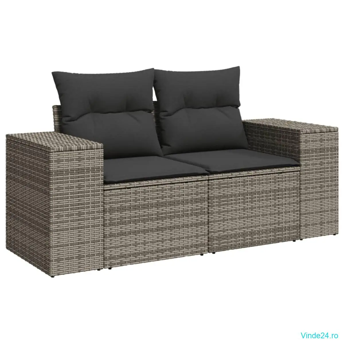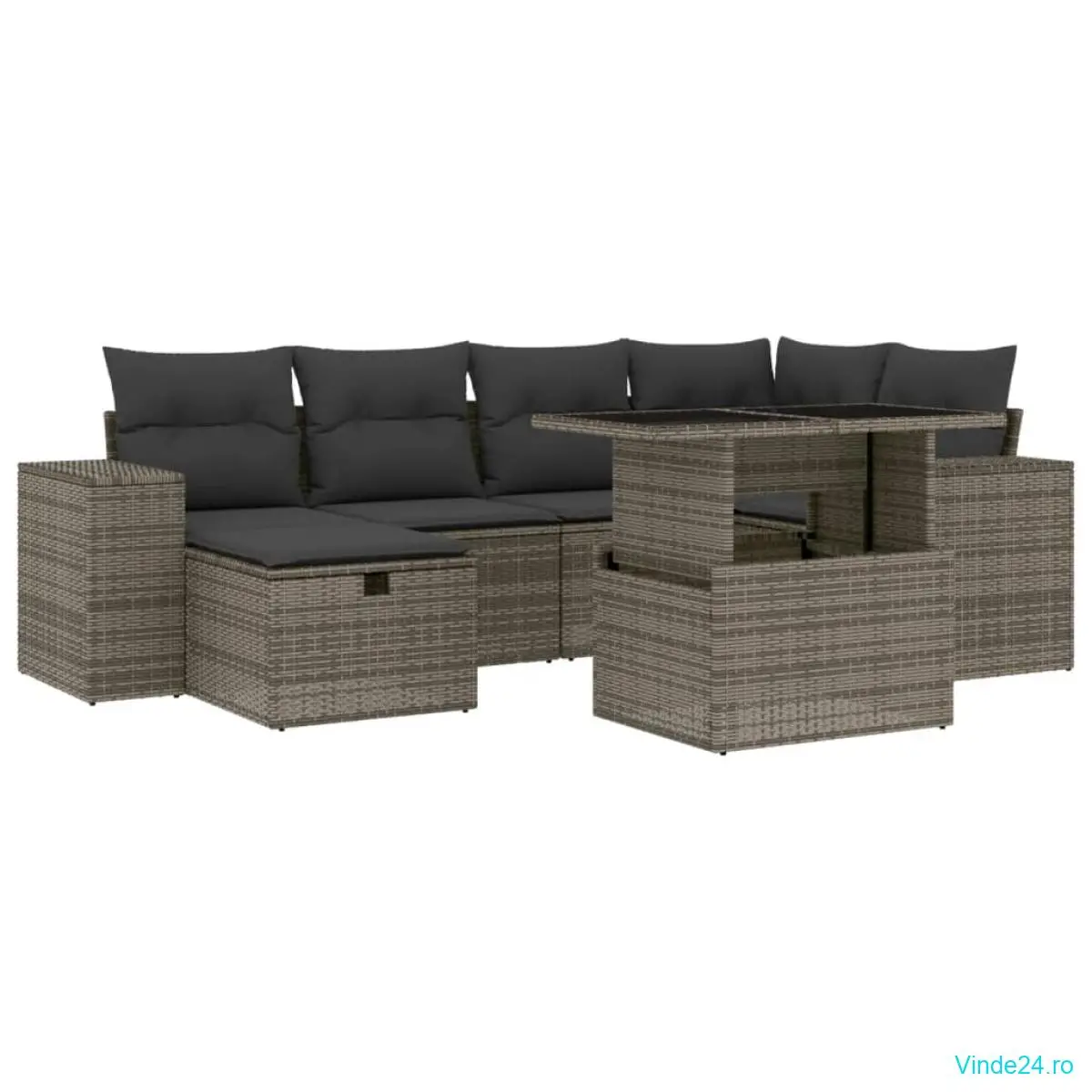 vidaXL Set canapele de grădină, 7 piese, cu perne, gri, poliratan