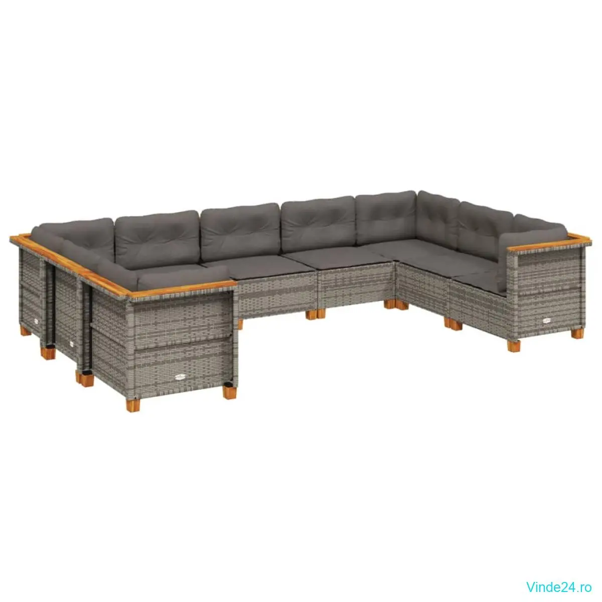 vidaXL Set canapele de grădină, 9 piese, cu perne, gri, poliratan