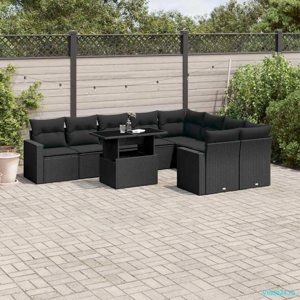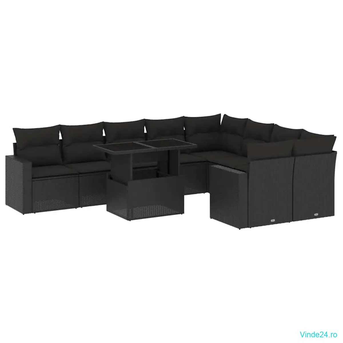 vidaXL Set canapele de grădină cu perne, 10 piese, negru, poliratan
