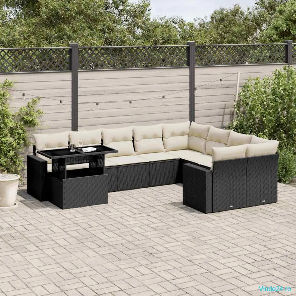 Acest set de canapele pentru grădină este completarea perfectă pentru curtea, terasa sau veranda dvs., oferind un spațiu confortabil și primitor pentru a discuta cu familia și prietenii sau pur și simplu pentru a vă relaxa și a vă bucura de aer liber.