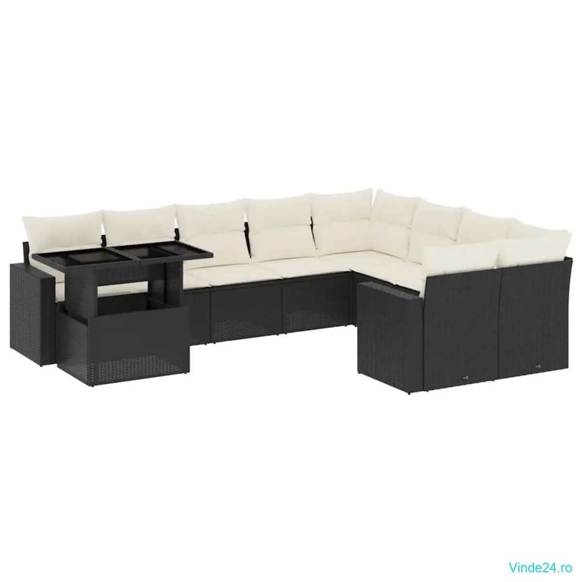 vidaXL Set canapele de grădină cu perne, 10 piese, negru, poliratan