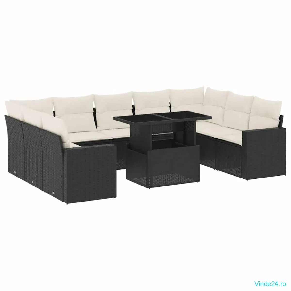 vidaXL Set canapele de grădină cu perne, 10 piese, negru, poliratan