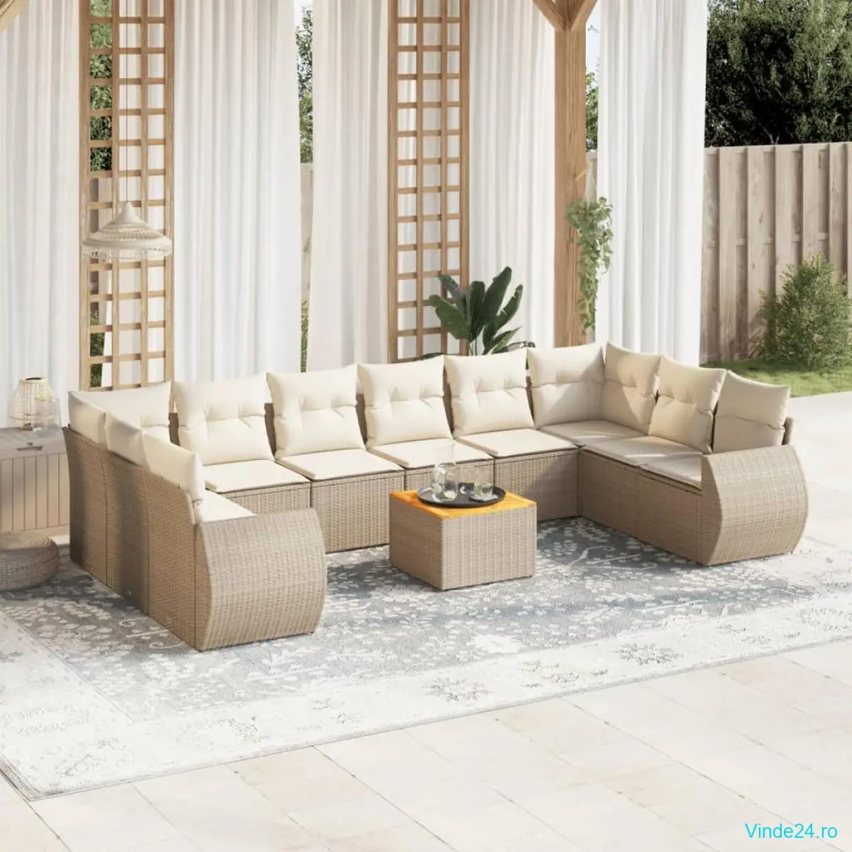 vidaXL Set canapele de grădină cu perne, 11 piese, bej, poliratan