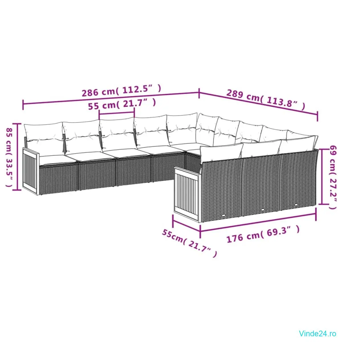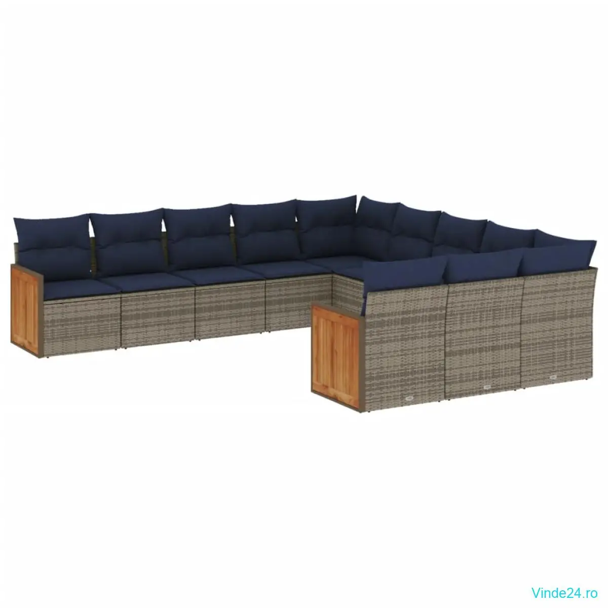 vidaXL Set canapele de grădină cu perne, 11 piese, gri, poliratan