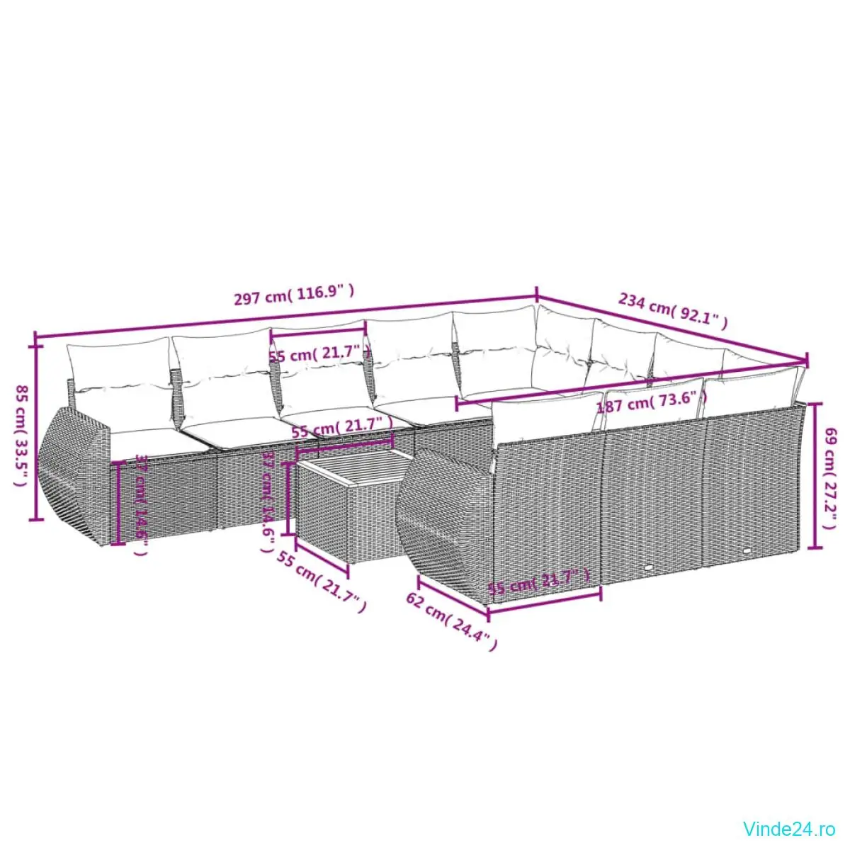 Acest set de canapele pentru grădină este completarea perfectă pentru curtea, terasa sau veranda dvs., oferind un spațiu confortabil și primitor pentru a discuta cu familia și prietenii sau pur și simplu pentru a vă relaxa și a vă bucura de aer liber.