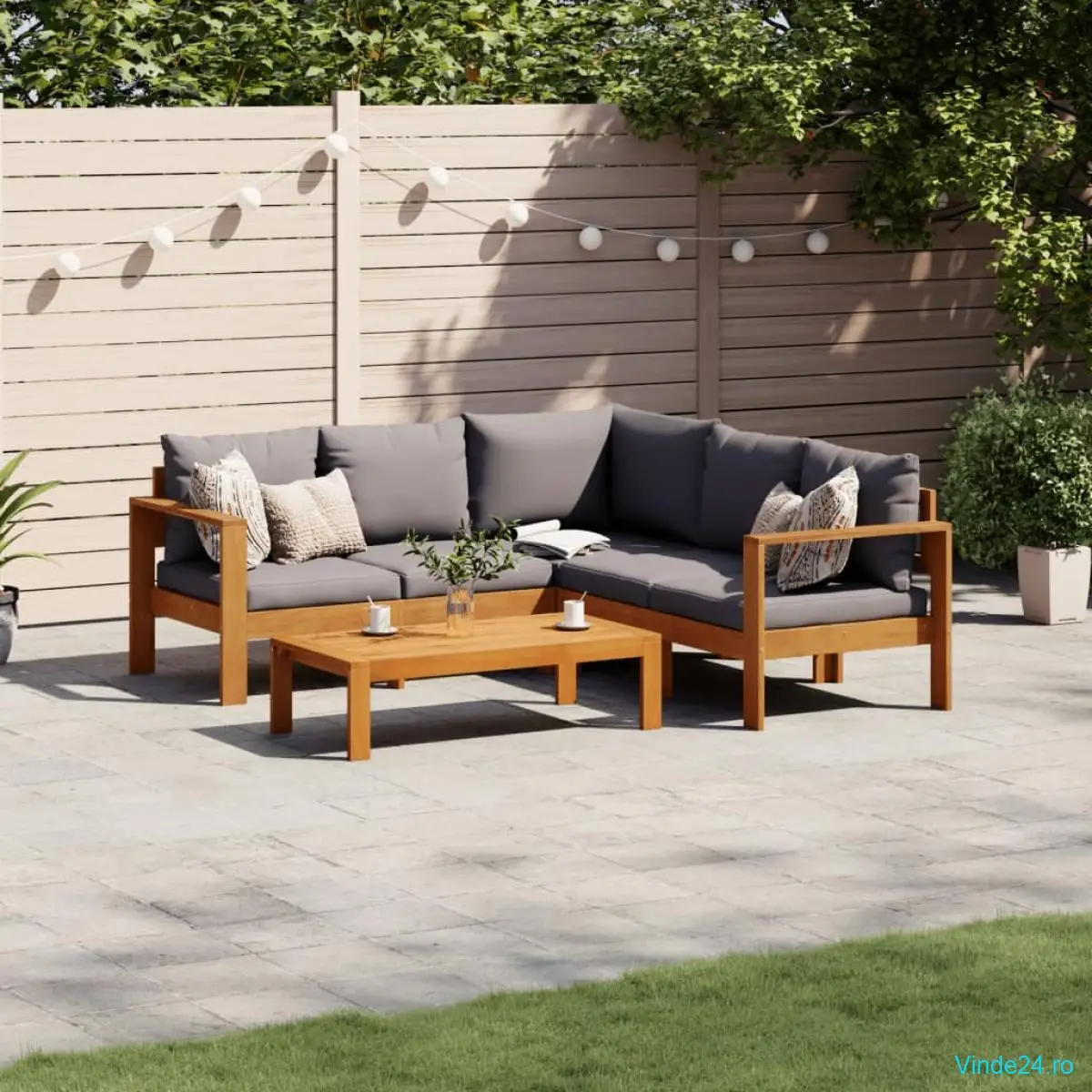 vidaXL Set canapele de grădină cu perne, 4 piese, lemn masiv de acacia