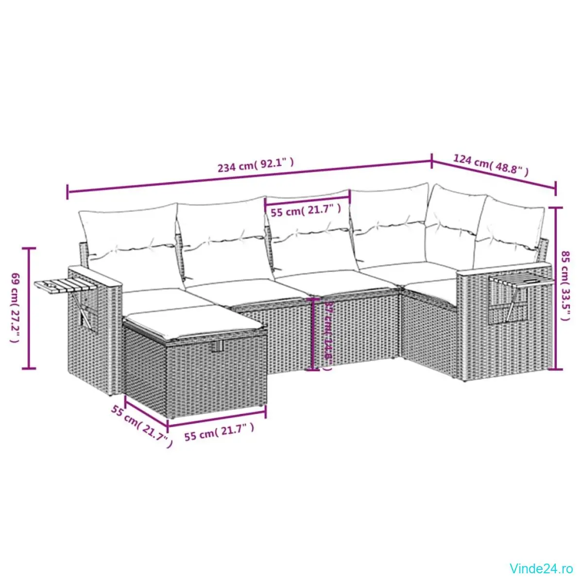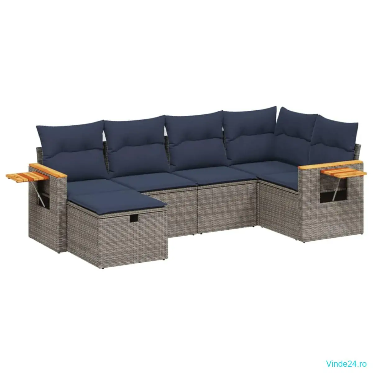 vidaXL Set canapele de grădină cu perne, 6 piese, gri, poliratan