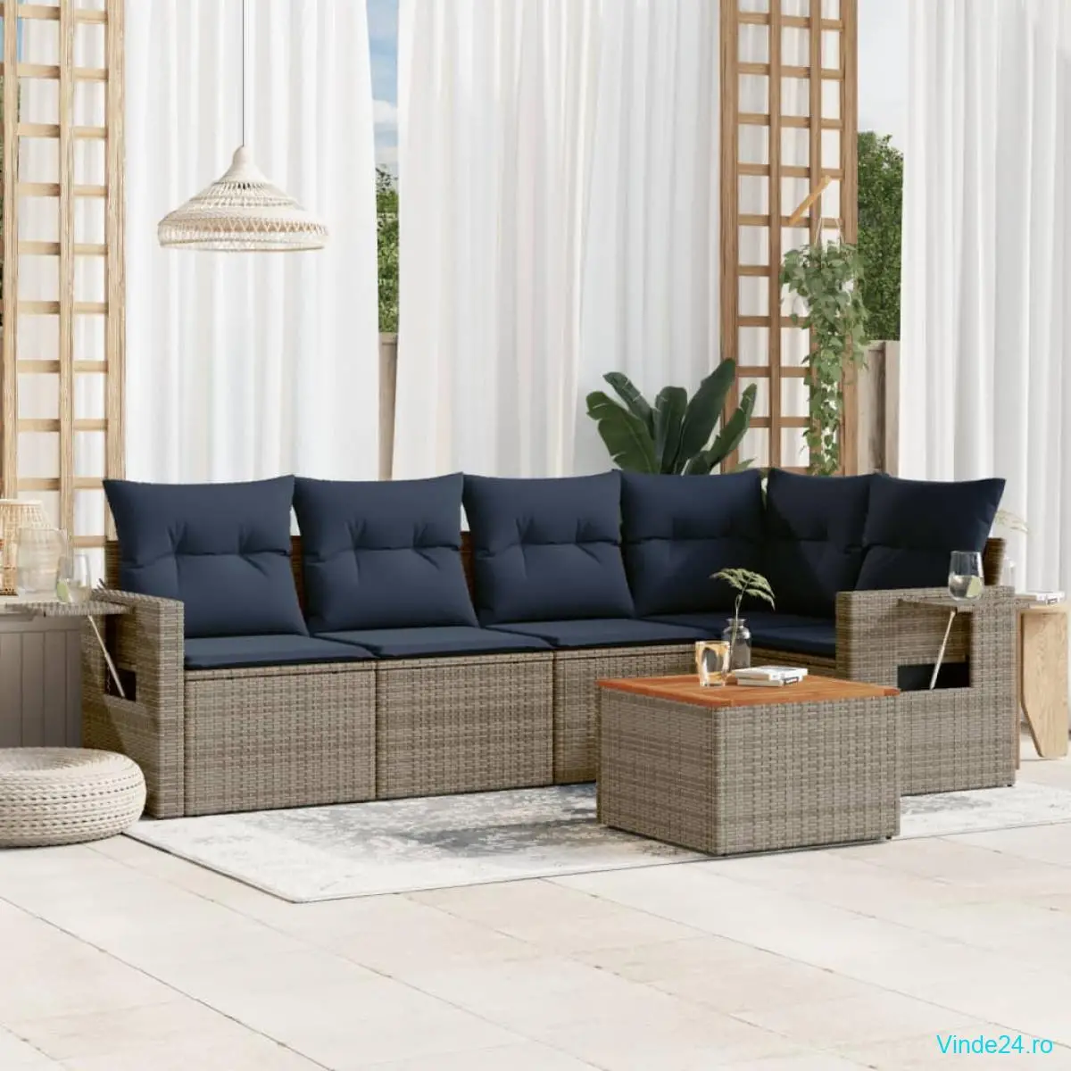 vidaXL Set canapele de grădină cu perne, 6 piese, gri, poliratan