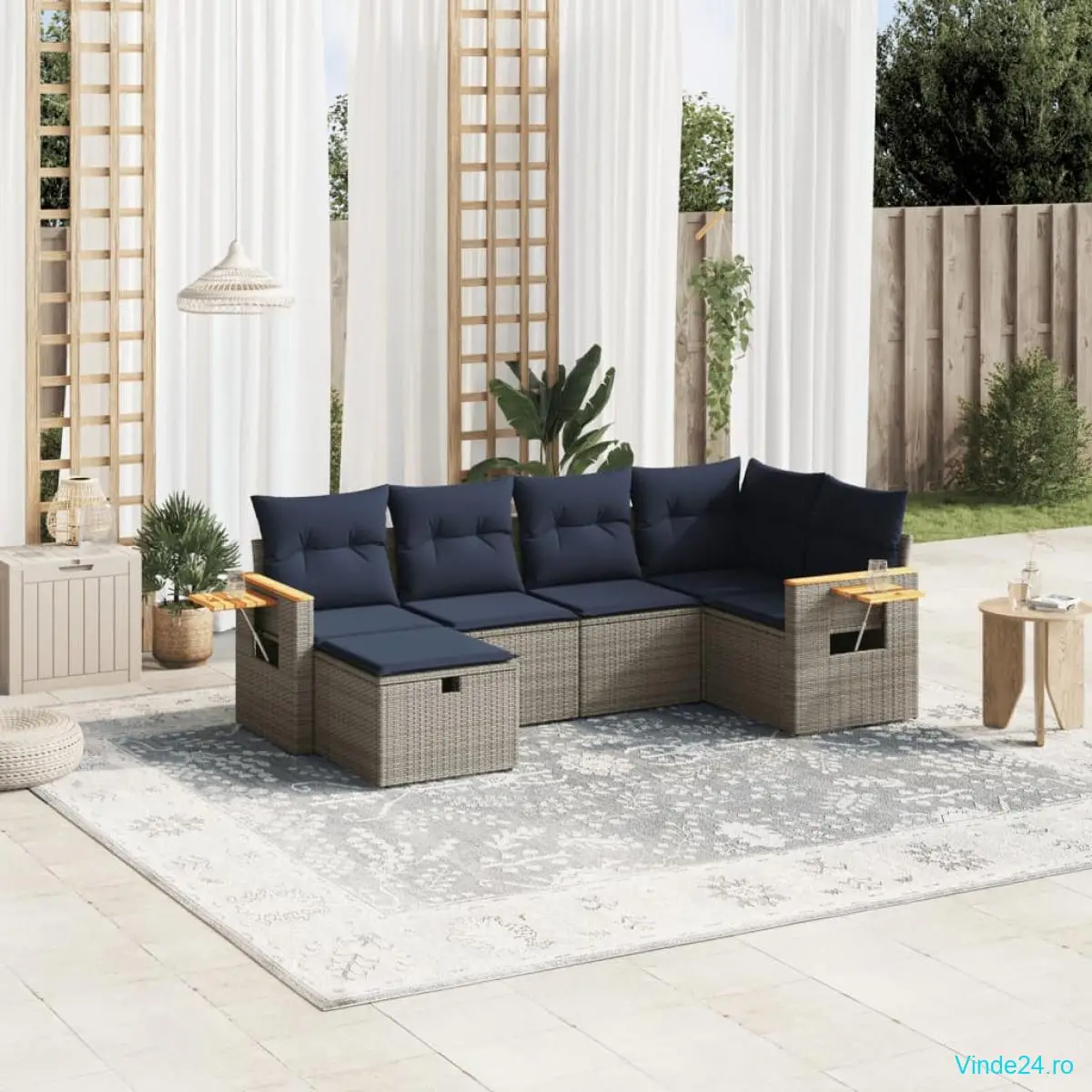 vidaXL Set canapele de grădină cu perne, 6 piese, gri, poliratan