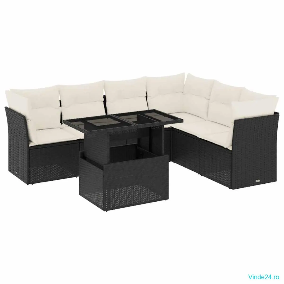 vidaXL Set canapele de grădină cu perne, 7 piese, negru, poliratan