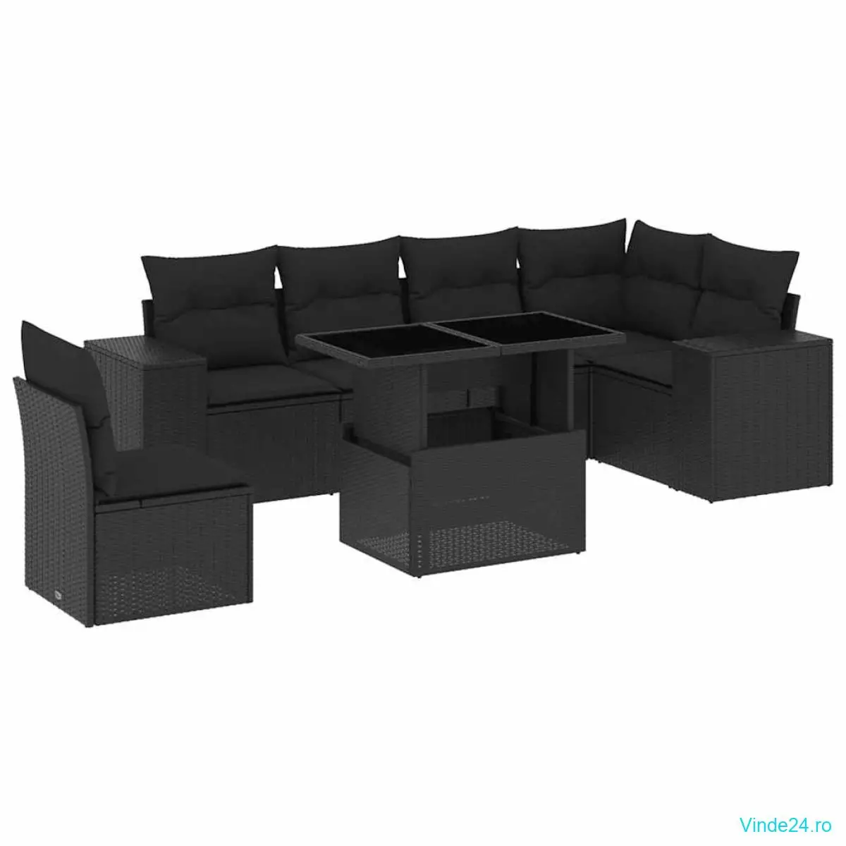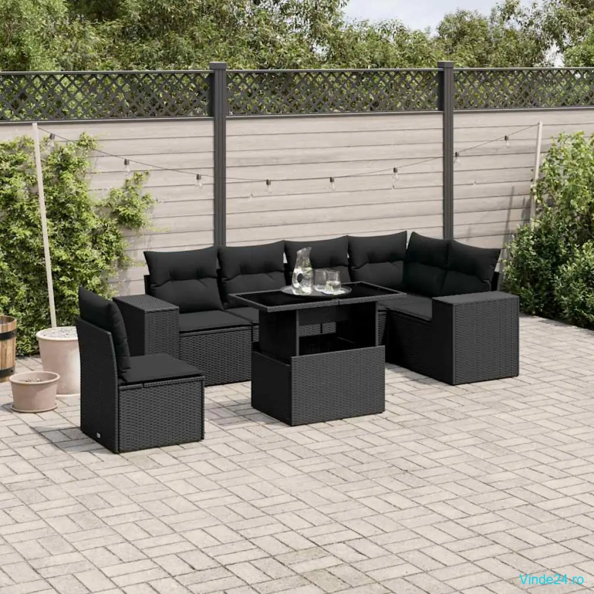 vidaXL Set canapele de grădină cu perne, 7 piese, negru, poliratan
