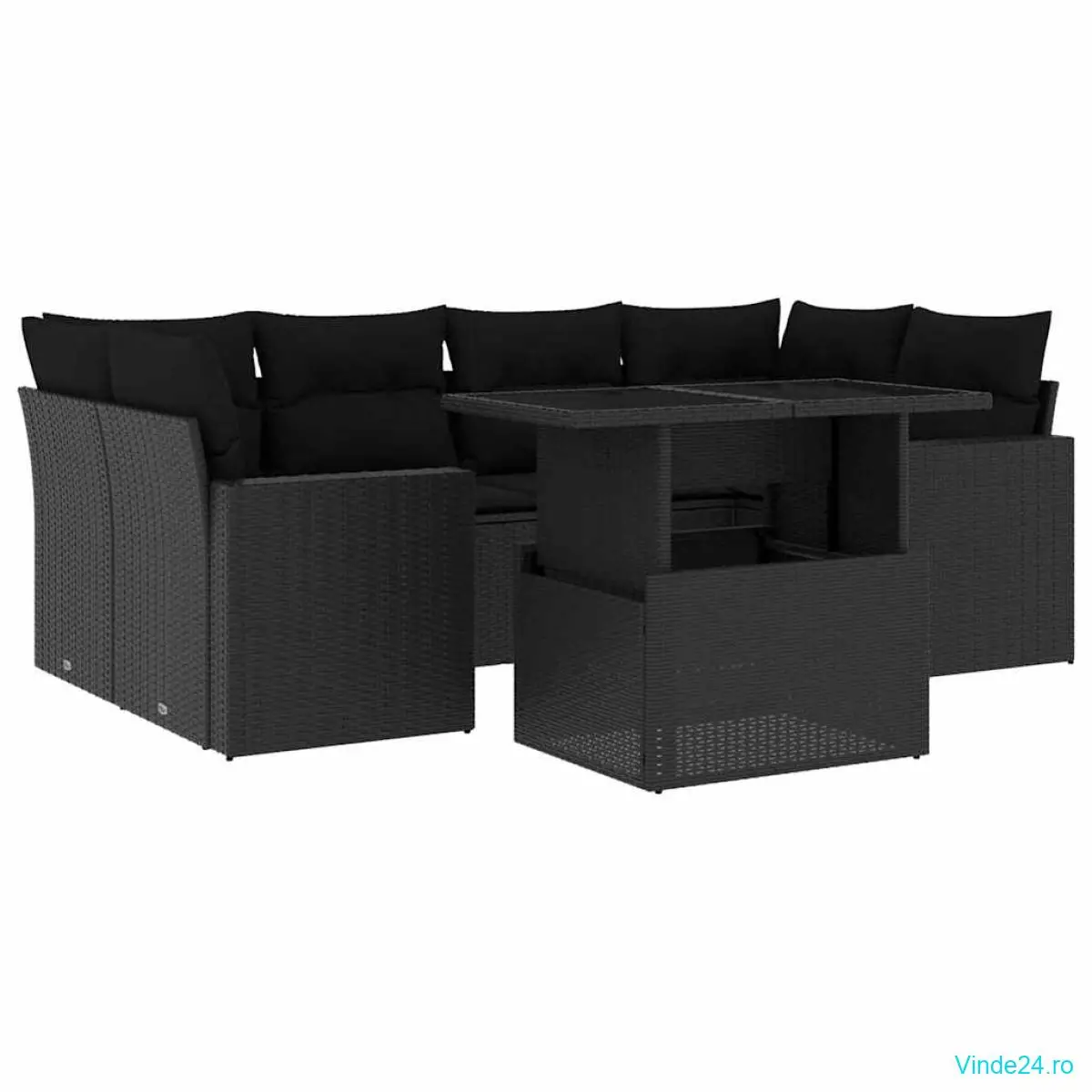vidaXL Set canapele de grădină cu perne, 7 piese, negru, poliratan