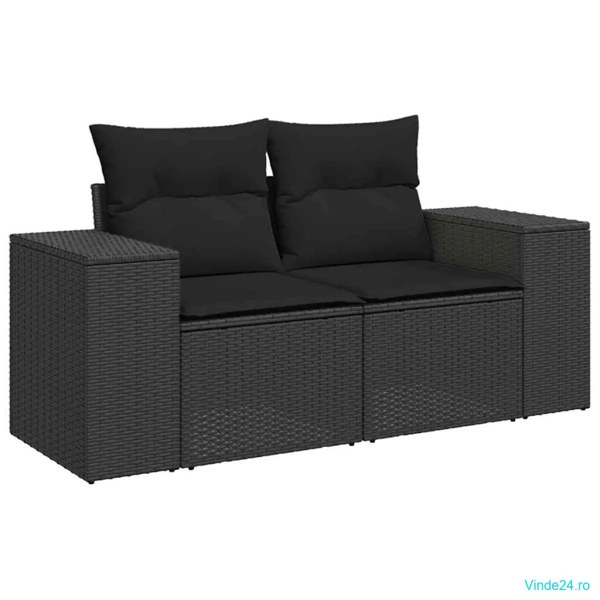 vidaXL Set mobilier de grădină cu perne, 8 piese, negru, poliratan