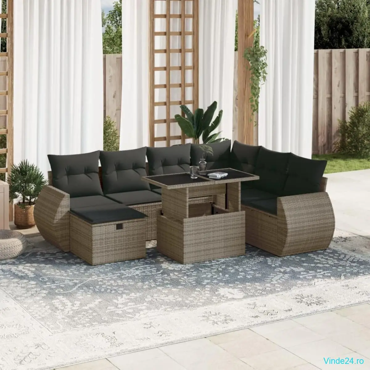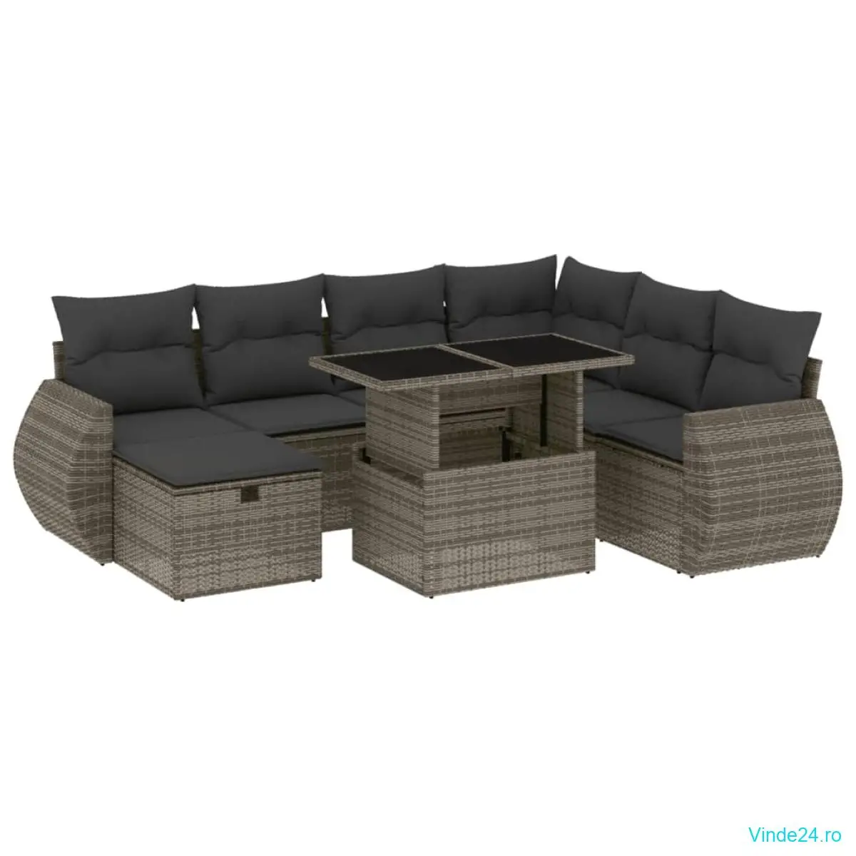 vidaXL Set canapele de grădină cu perne, 8 piese, gri, poliratan