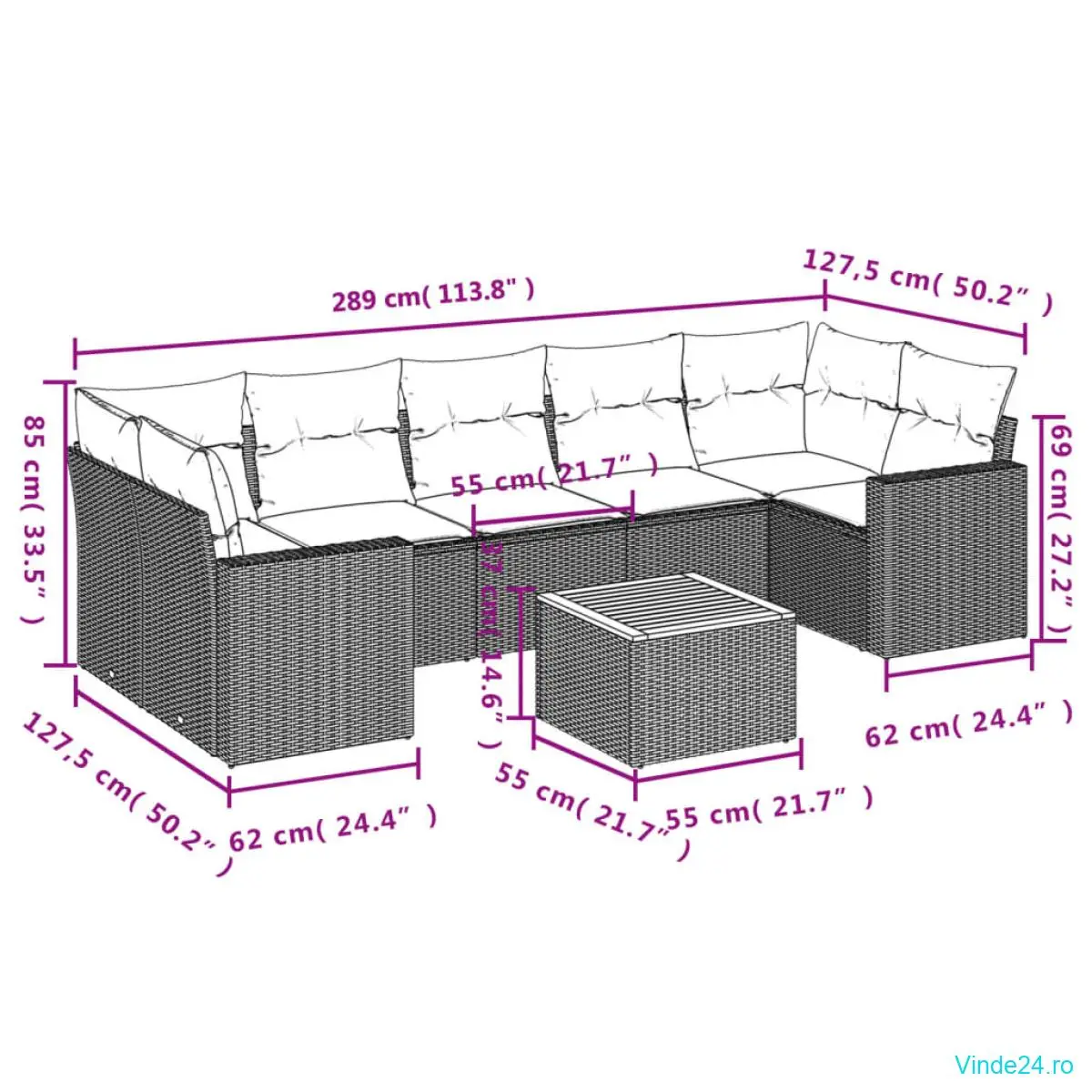 vidaXL Set canapele de grădină cu perne, 8 piese, gri, poliratan