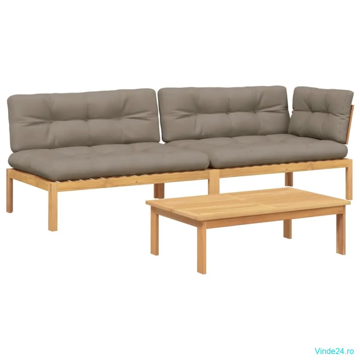 Acest set de canapea din paleți de lemn include 1 masă și 2 canapele. Este o alegere excelentă pentru utilizare în aer liber sau relaxare.