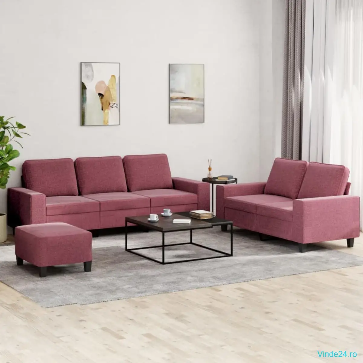 vidaXL Set de canapea, 3 piese, roșu vin, material textil