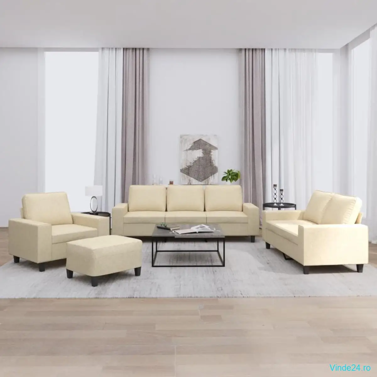 vidaXL Set de canapele, 4 piese, crem, microfibră