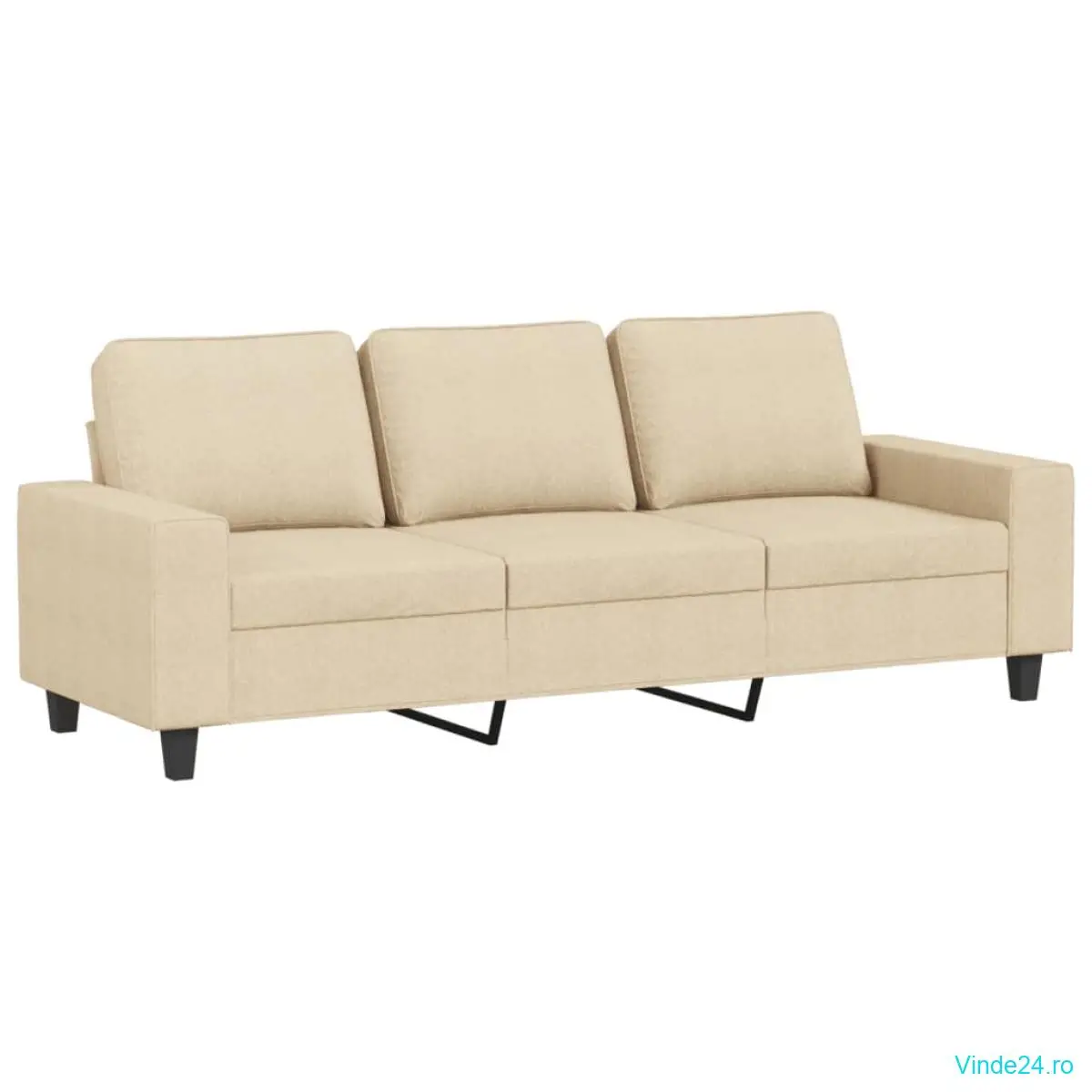 vidaXL Set de canapele cu perne, 3 piese, crem, textil