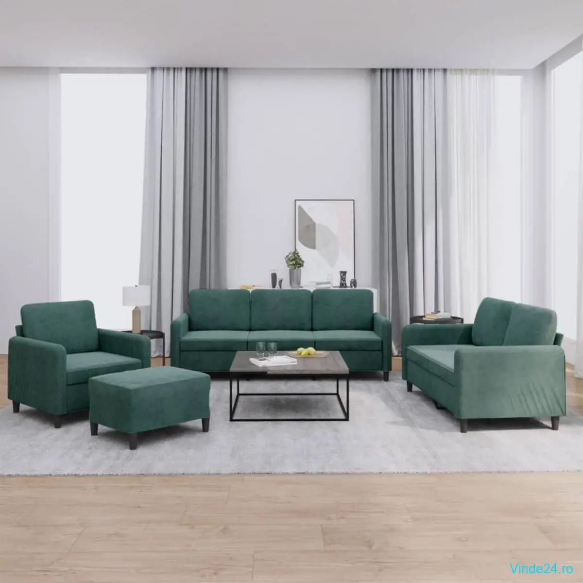vidaXL Set de canapele, 4 piese, verde închis, catifea