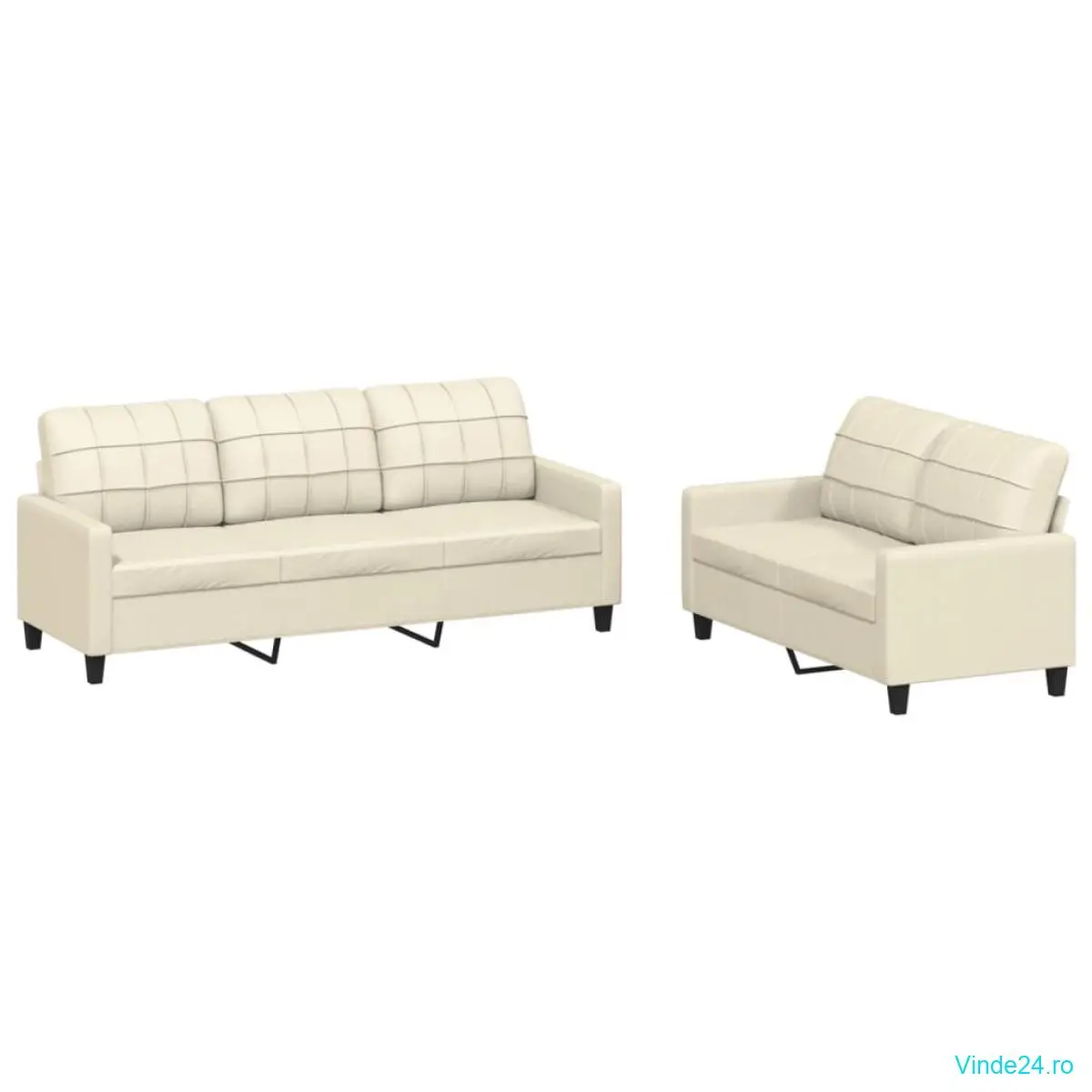 vidaXL Set de canapele cu perne, 2 piese, crem, piele ecologică
