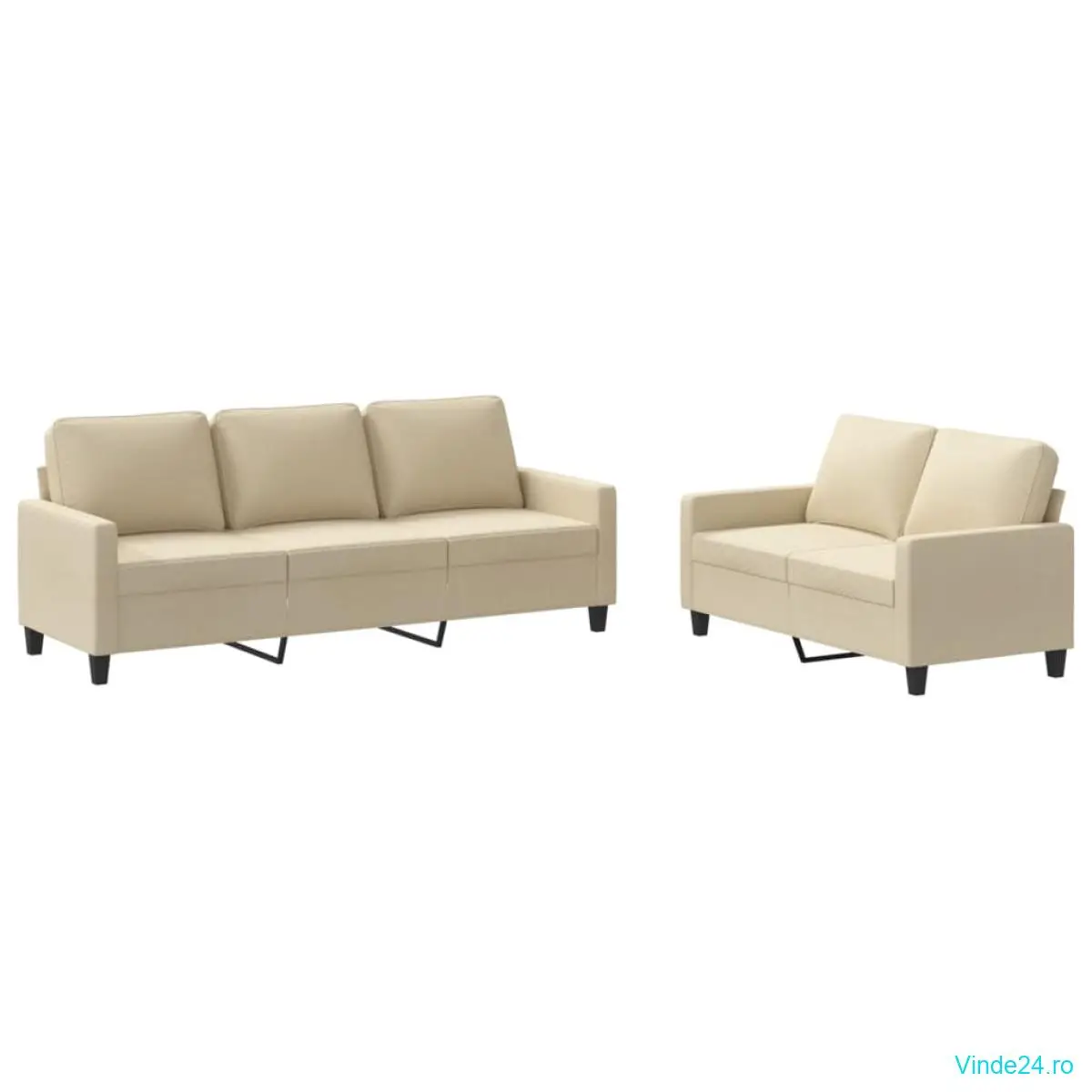 vidaXL Set de canapele cu perne, 2 piese, crem, textil