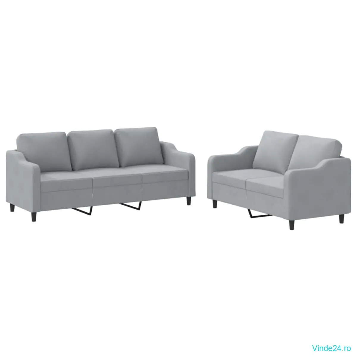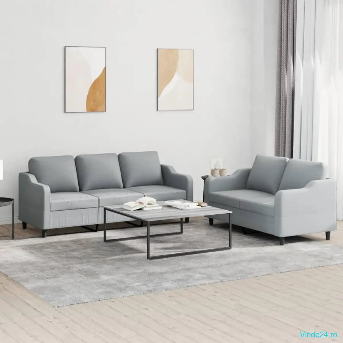 vidaXL Set de canapele cu perne, 2 piese, gri deschis, textil