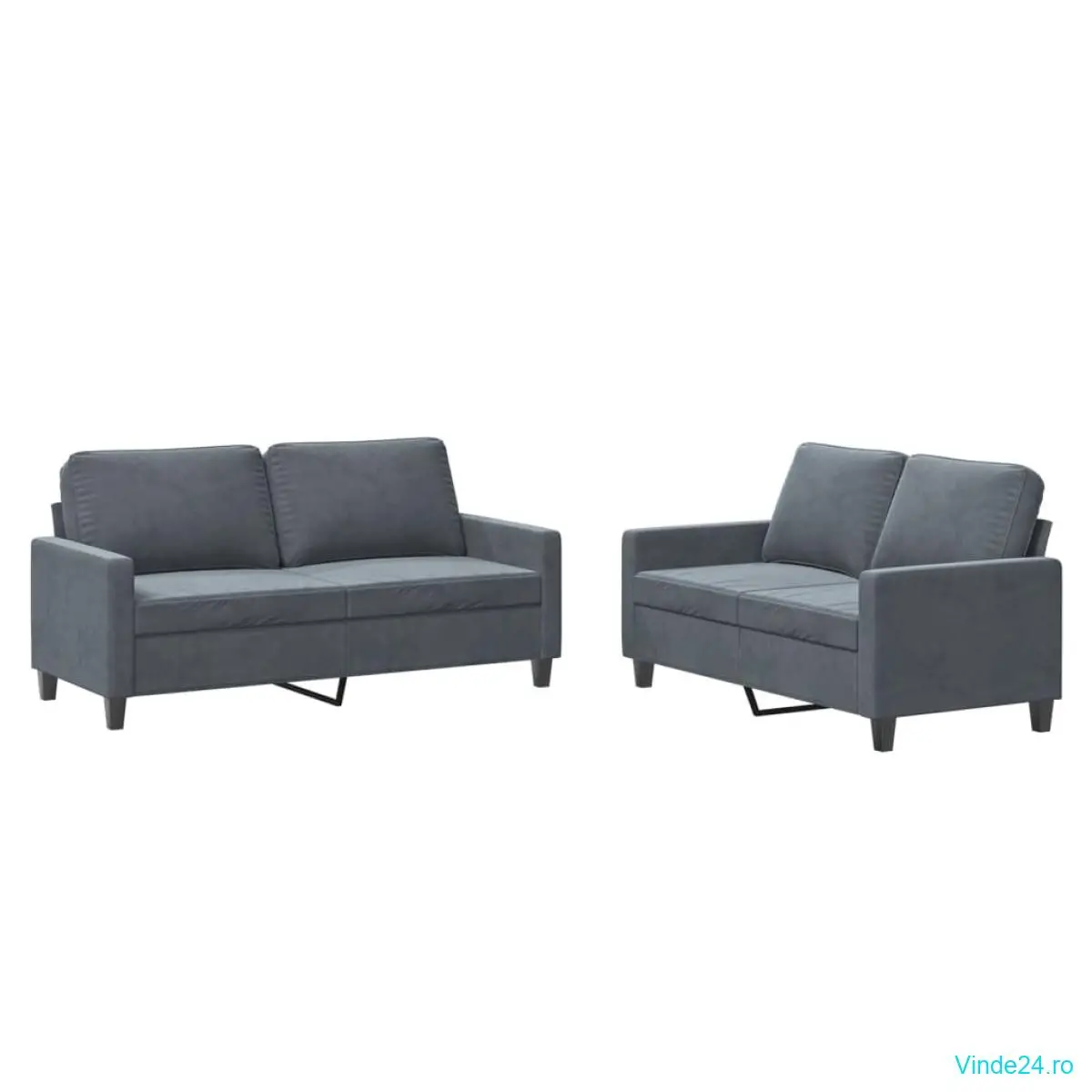 vidaXL Set de canapele cu perne, 2 piese, gri închis, catifea