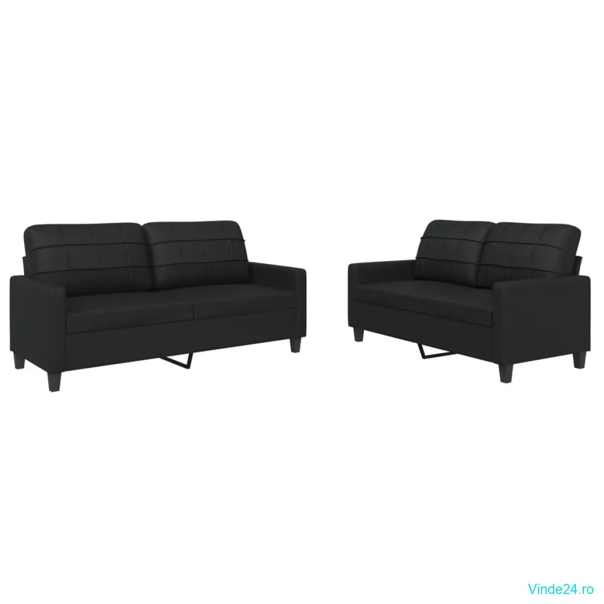 vidaXL Set de canapele cu perne, 2 piese, negru, piele ecologică