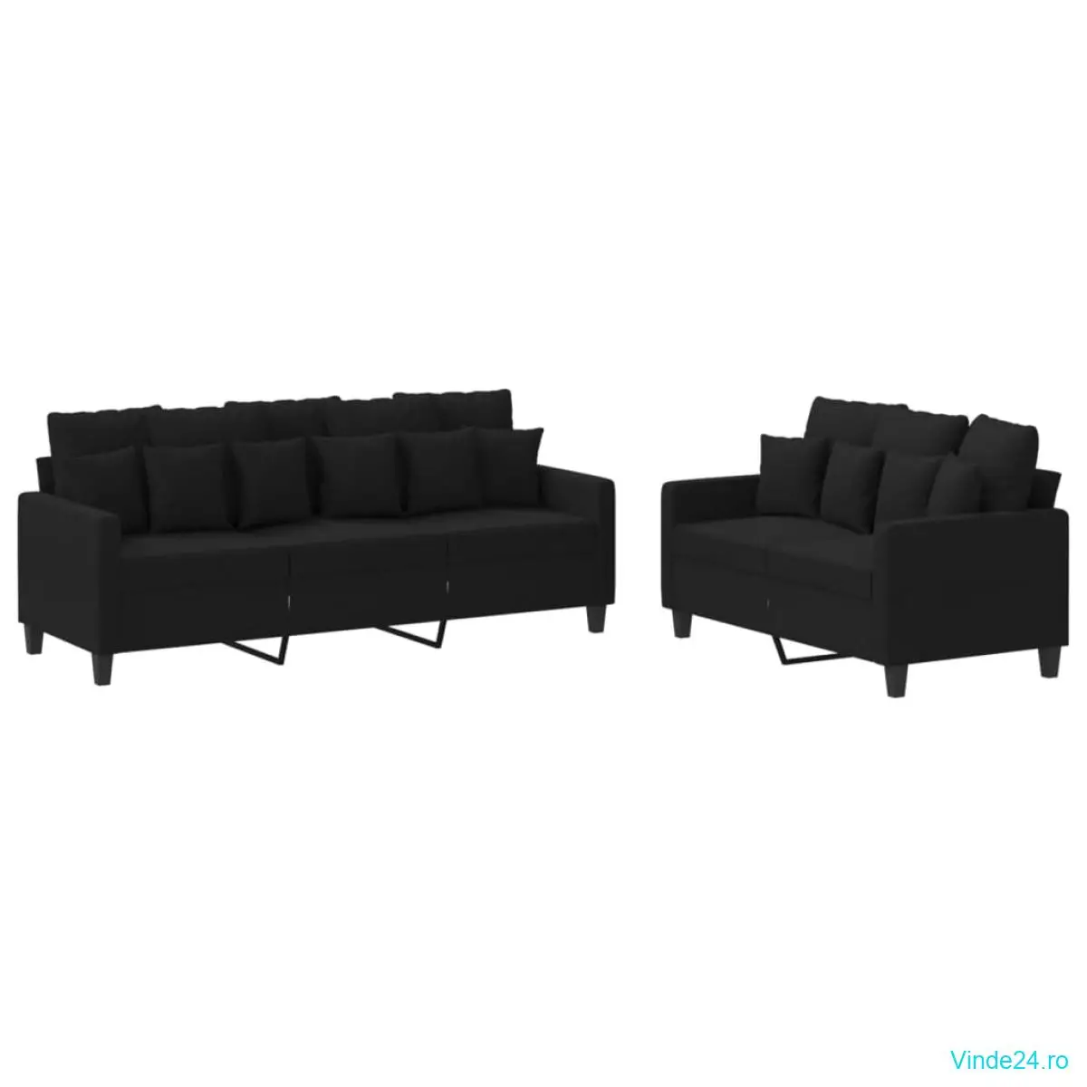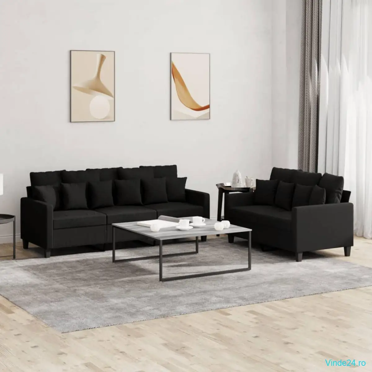 vidaXL Set de canapele cu perne, 2 piese, negru, textil