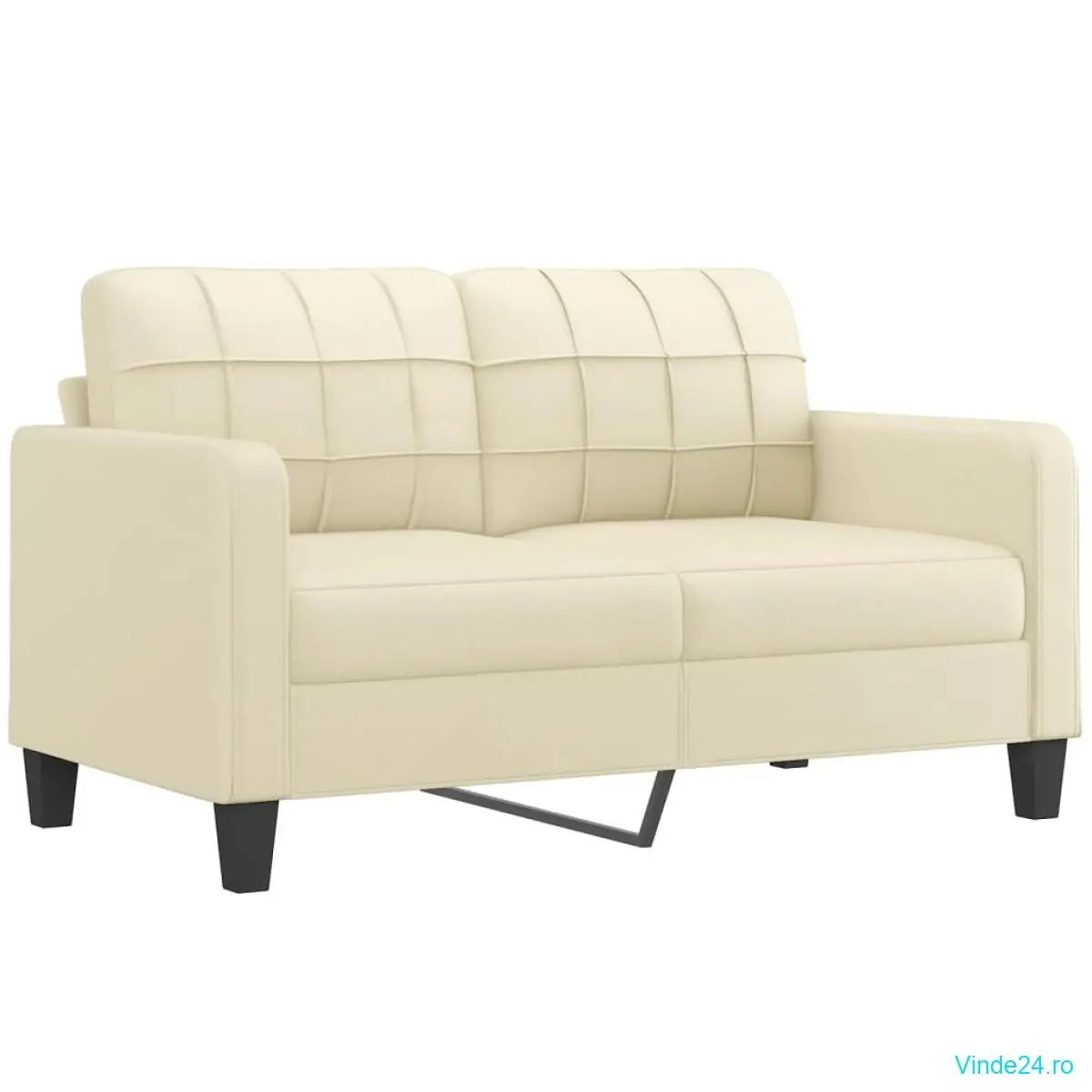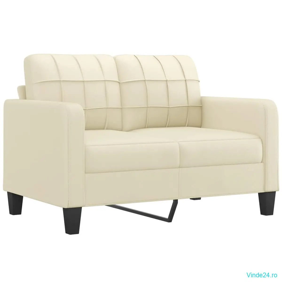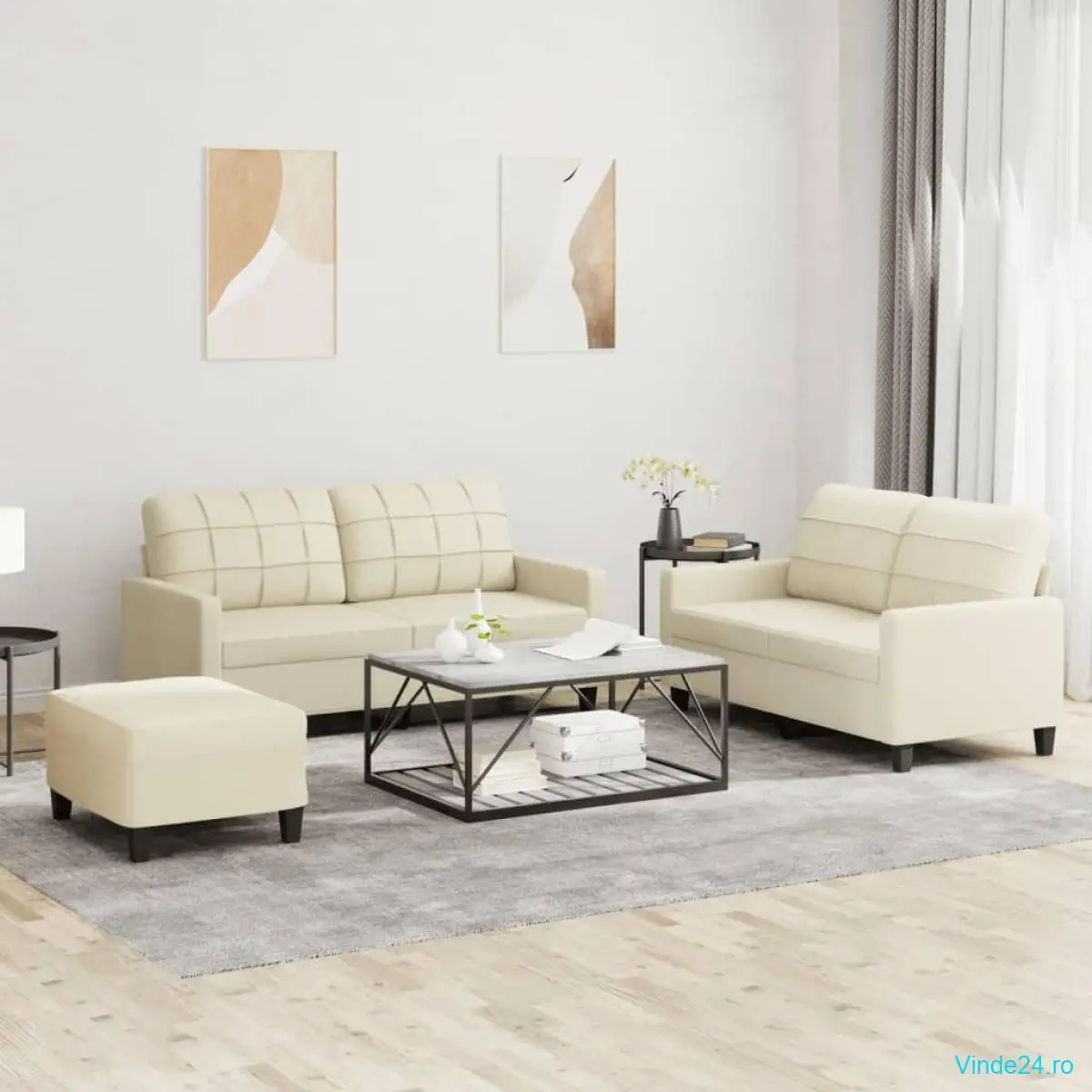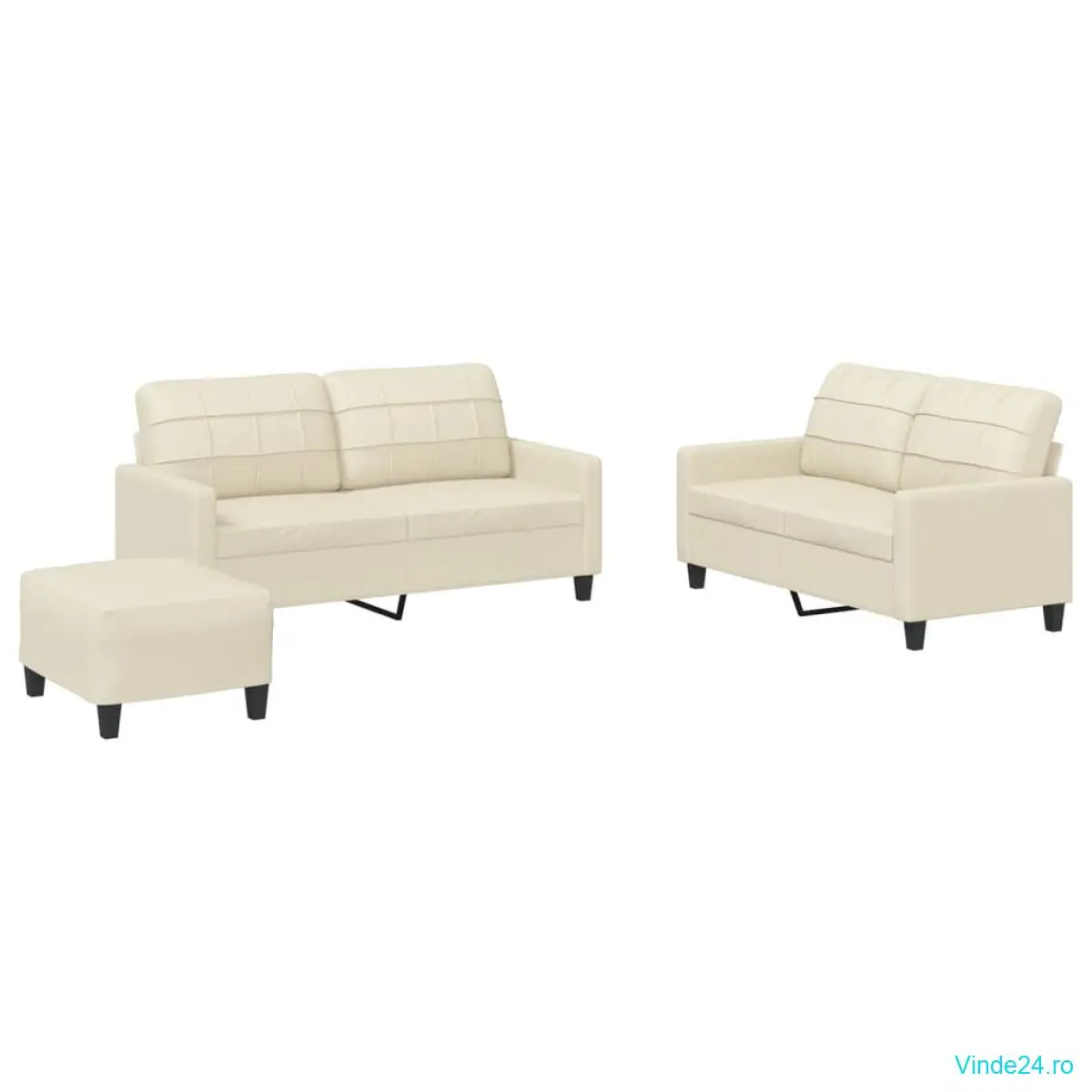 vidaXL Set de canapele cu perne, 3 piese, crem, piele ecologică