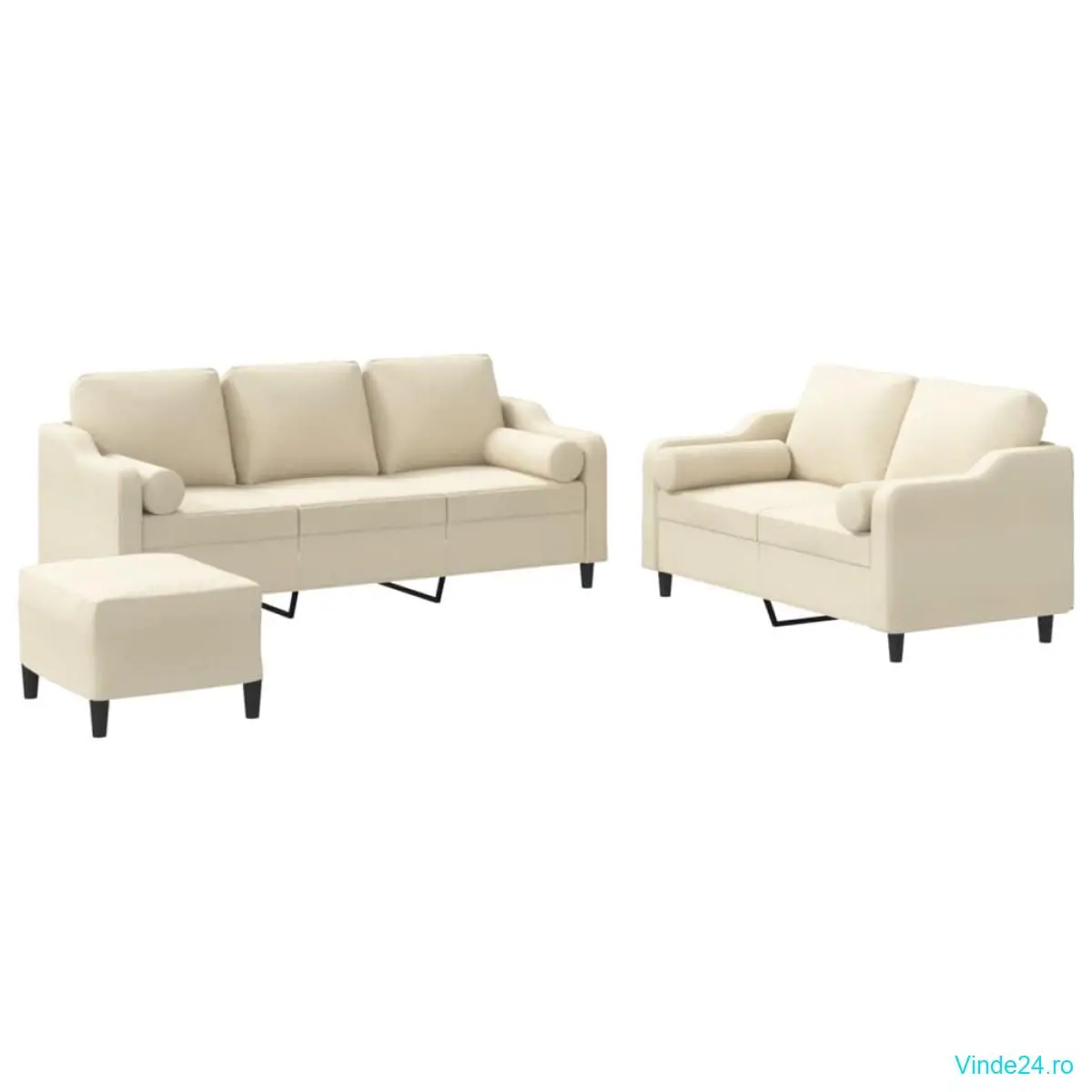 vidaXL Set de canapele cu perne, 3 piese, crem, textil