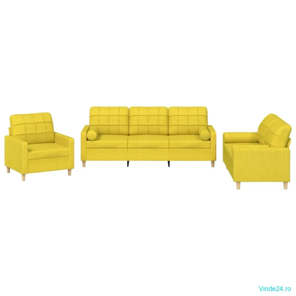 vidaXL Set de canapele cu perne, 3 piese, galben deschis, textil