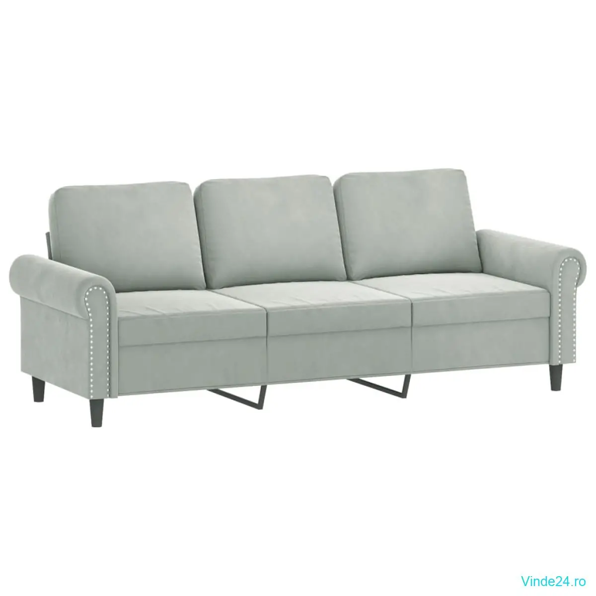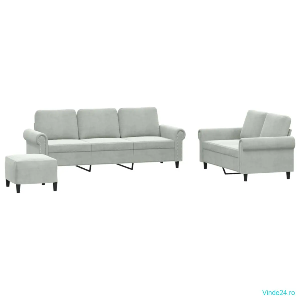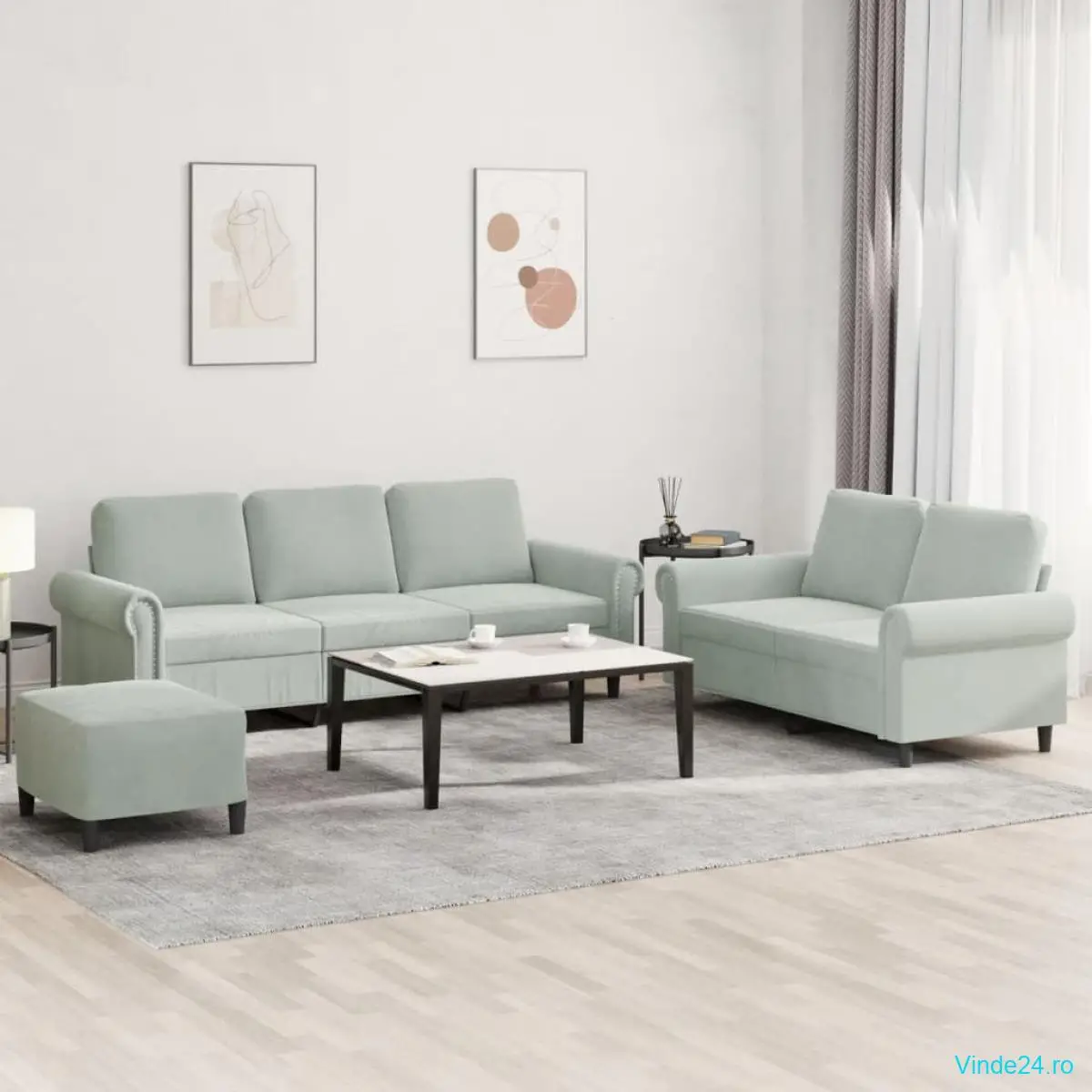 vidaXL Set de canapele cu perne, 3 piese, gri deschis, catifea