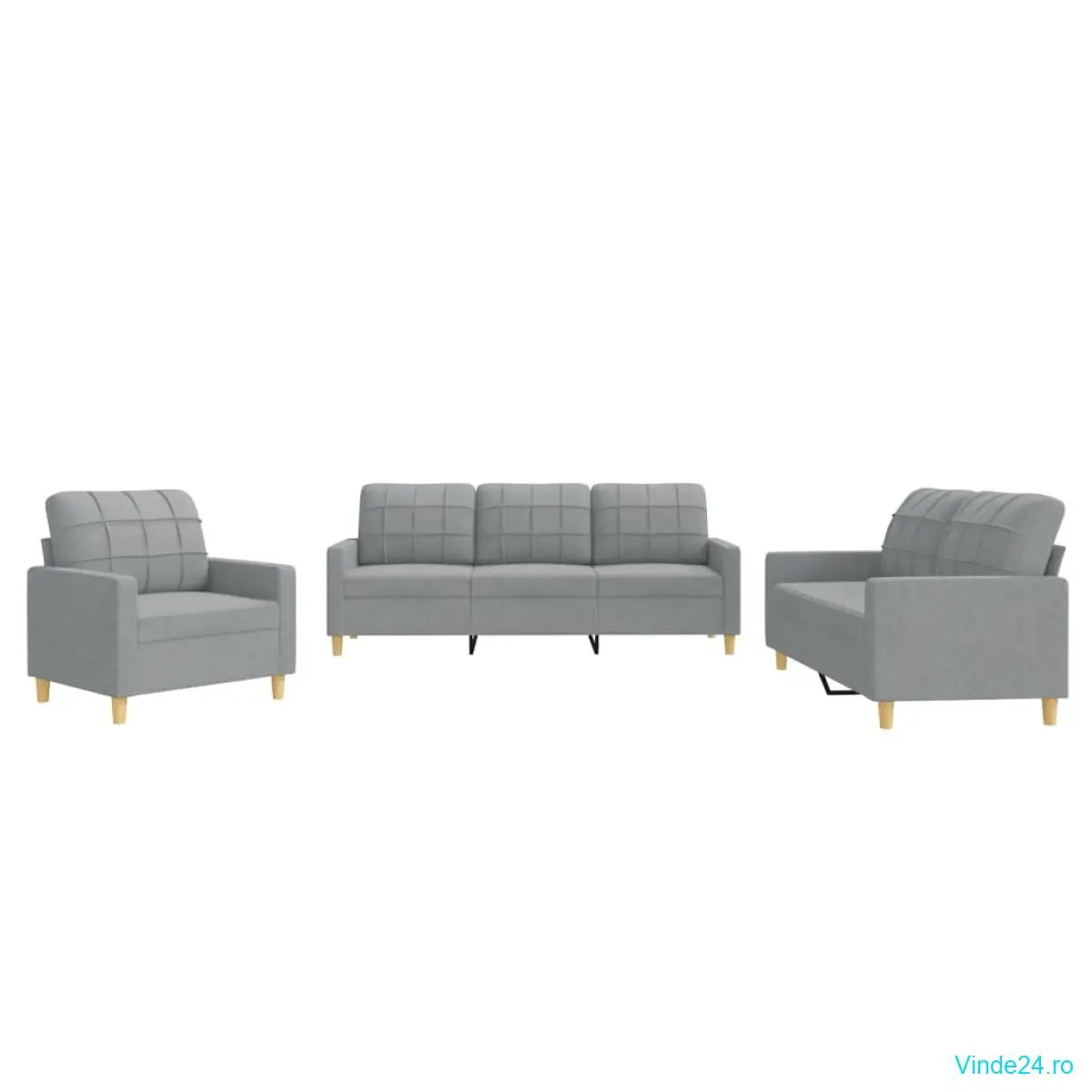 vidaXL Set de canapele cu perne, 3 piese, gri deschis, textil