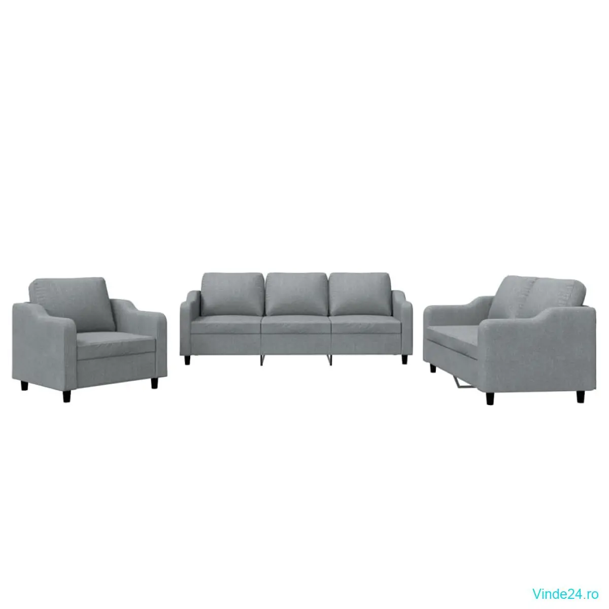 vidaXL Set de canapele cu perne, 3 piese, gri deschis, textil