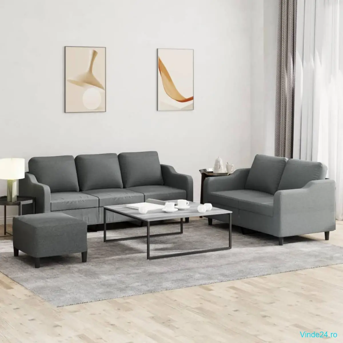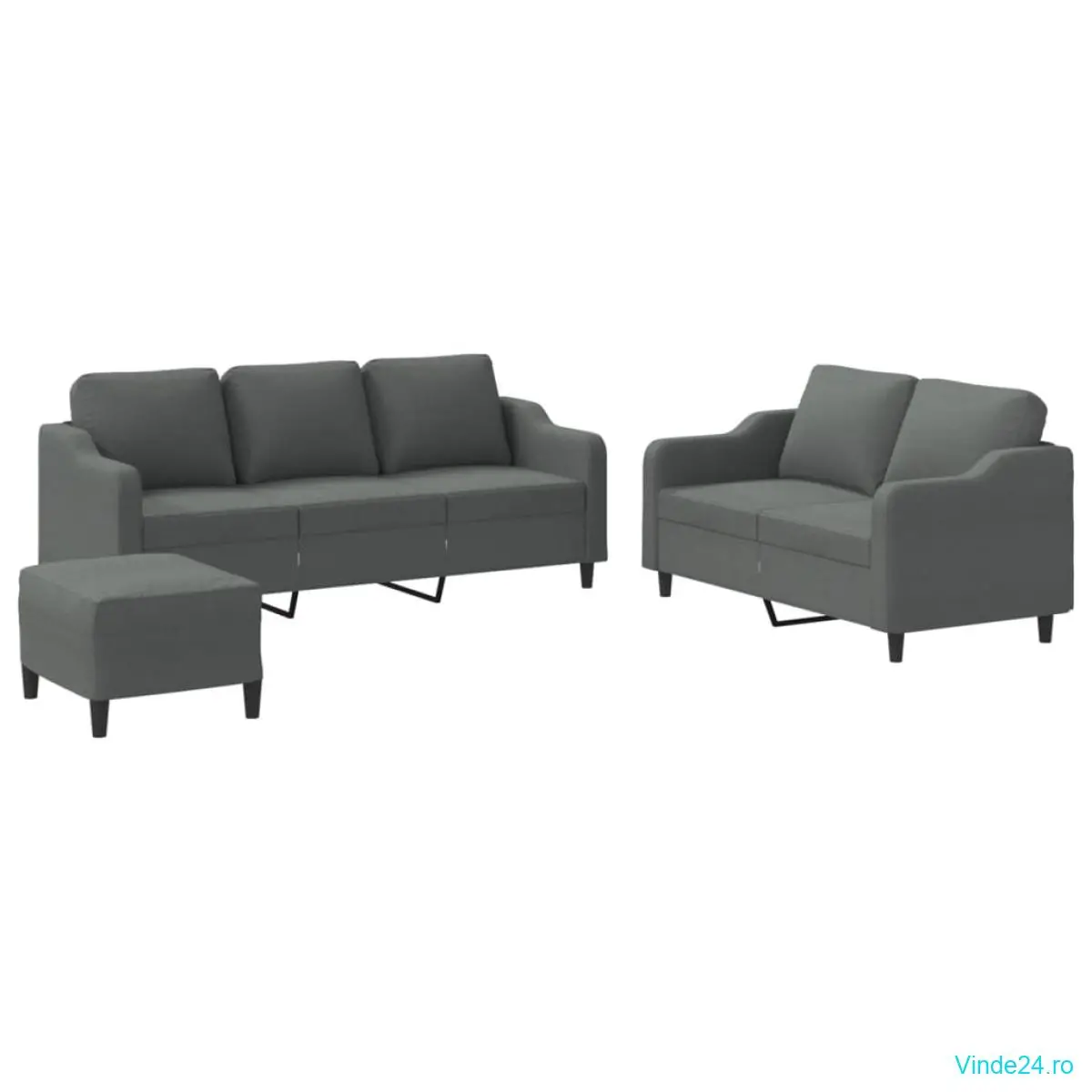 vidaXL Set de canapele cu perne, 3 piese, gri închis, textil