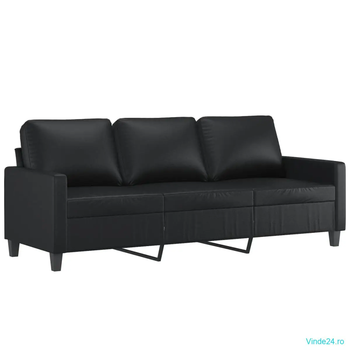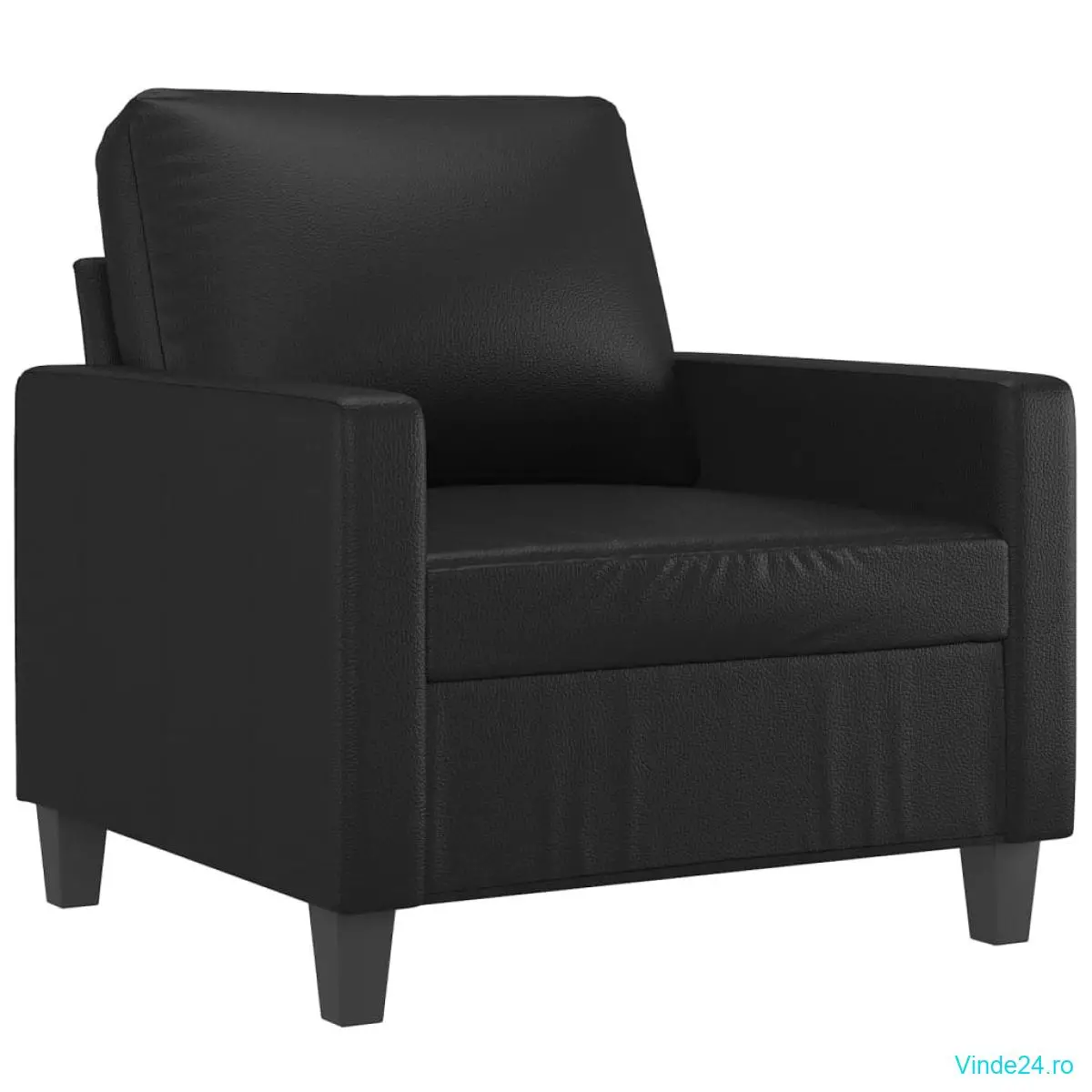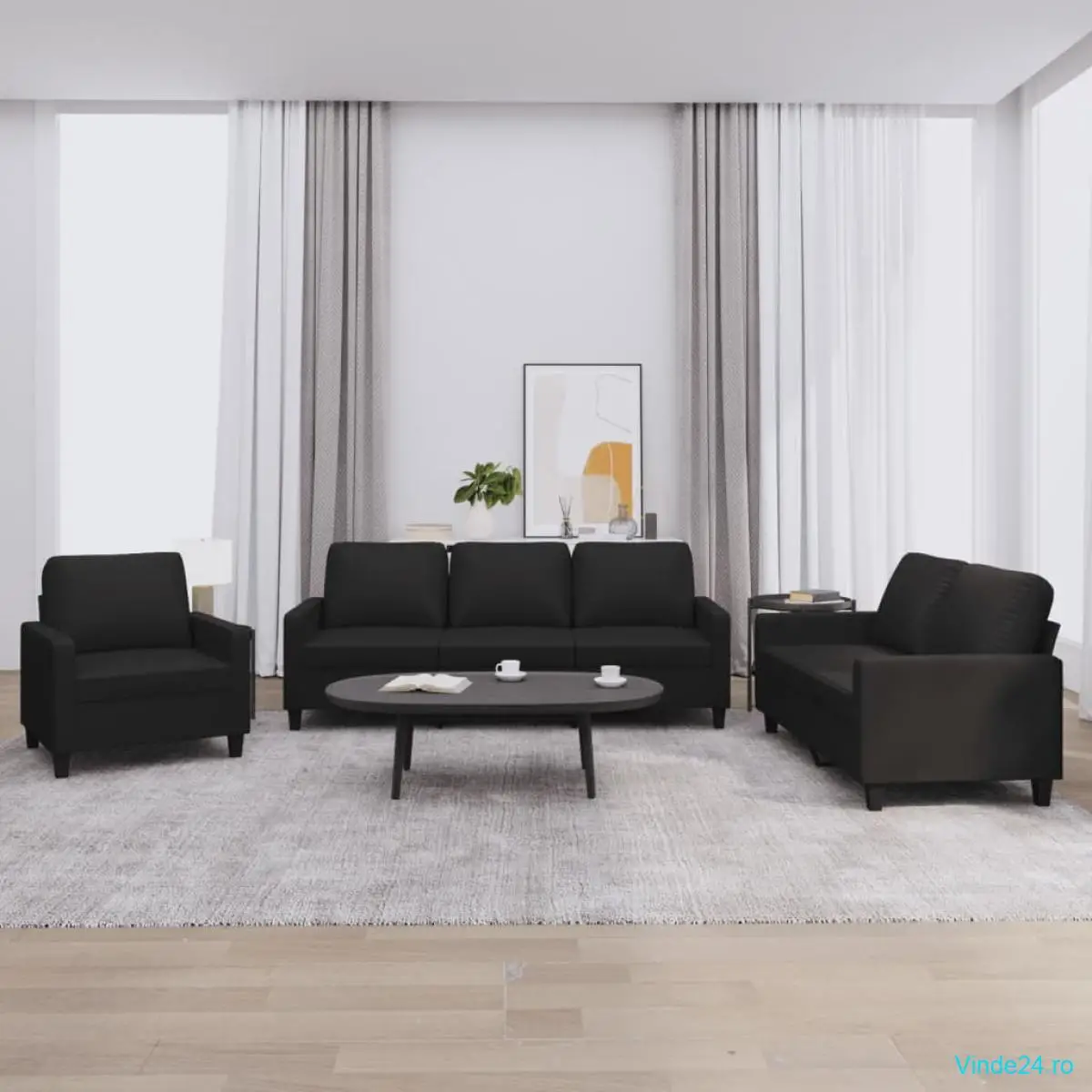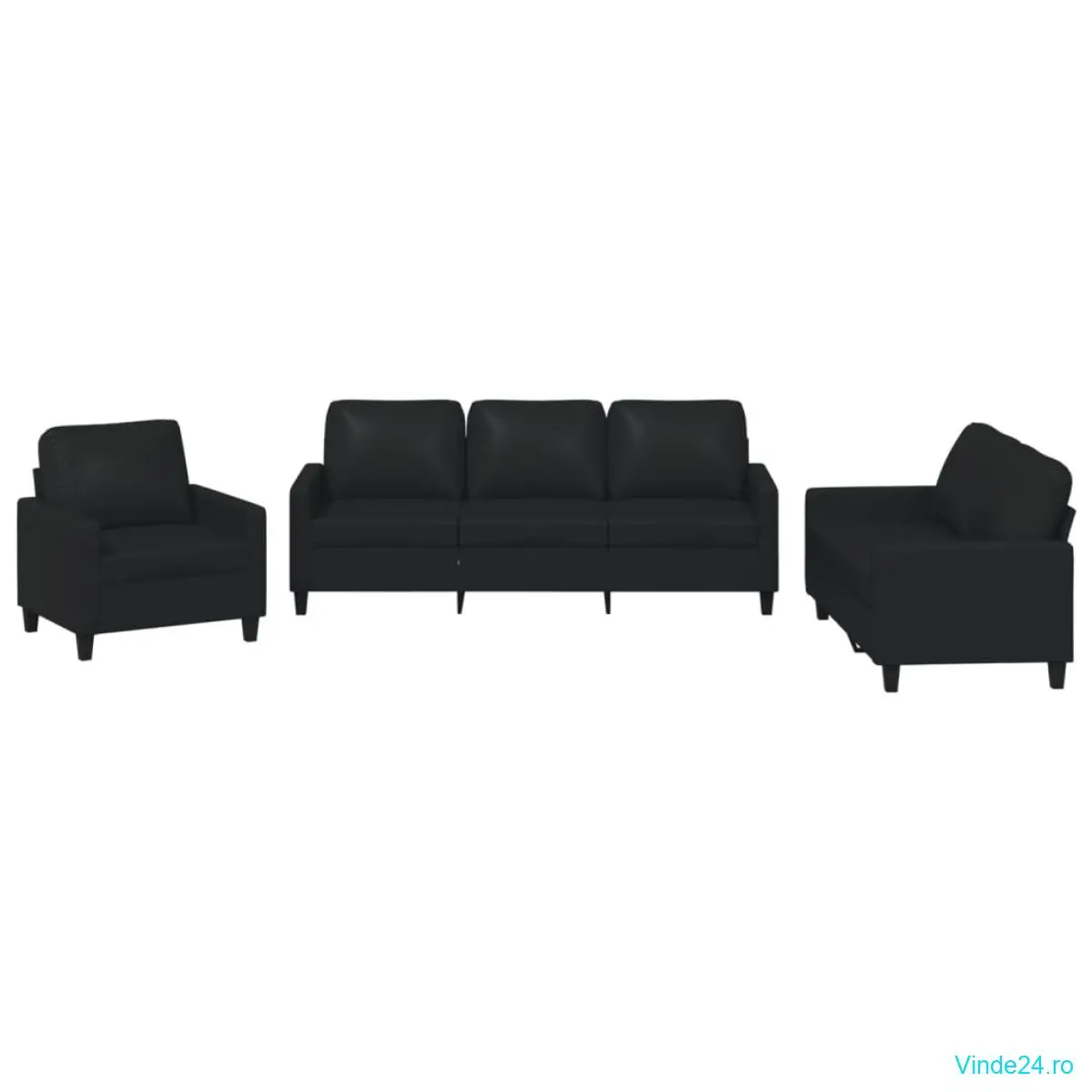 vidaXL Set de canapele cu perne, 3 piese, negru, piele ecologică