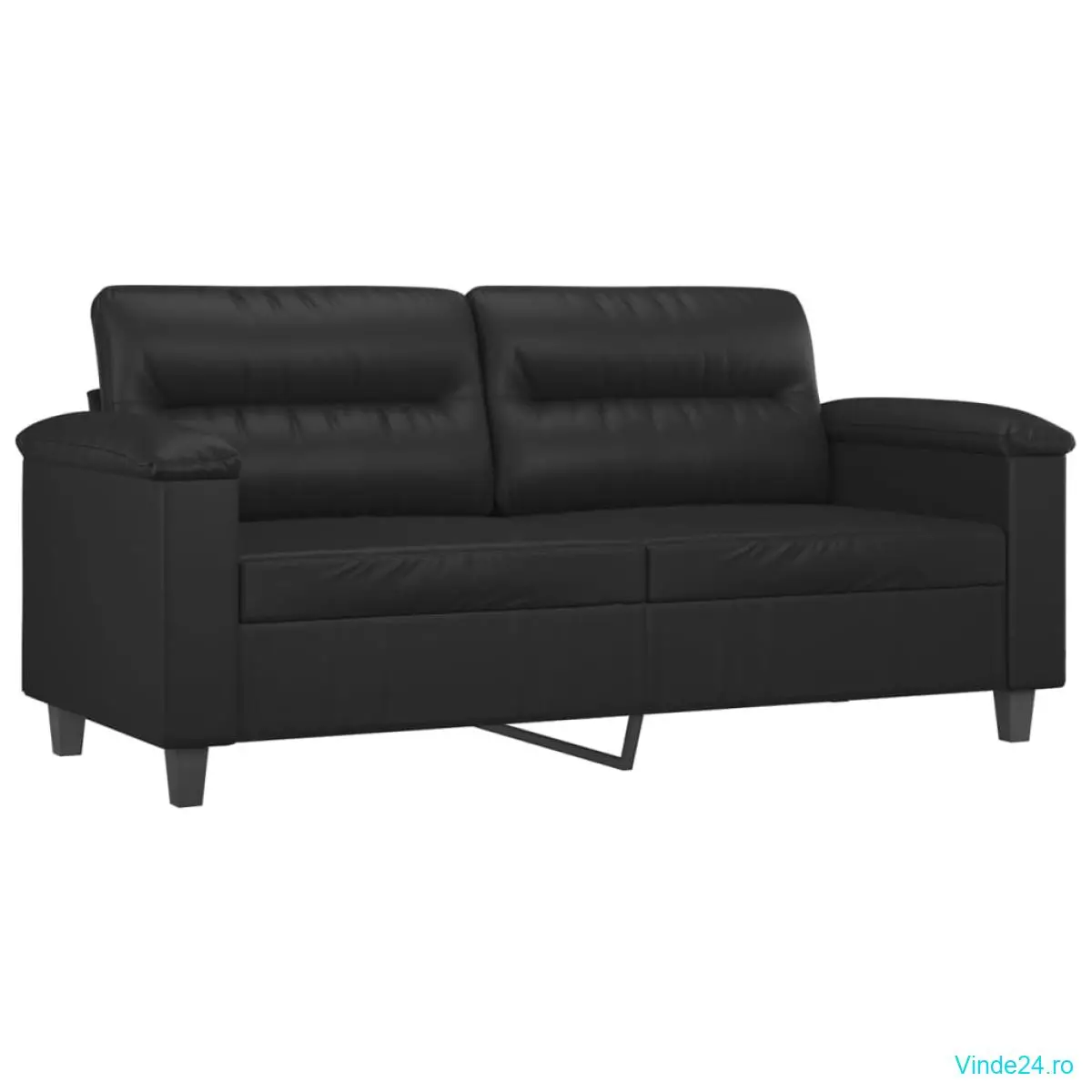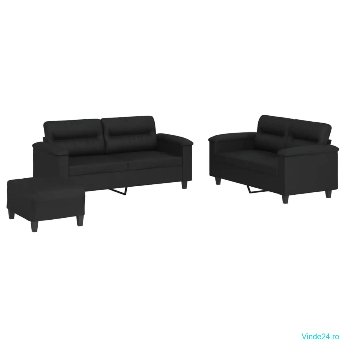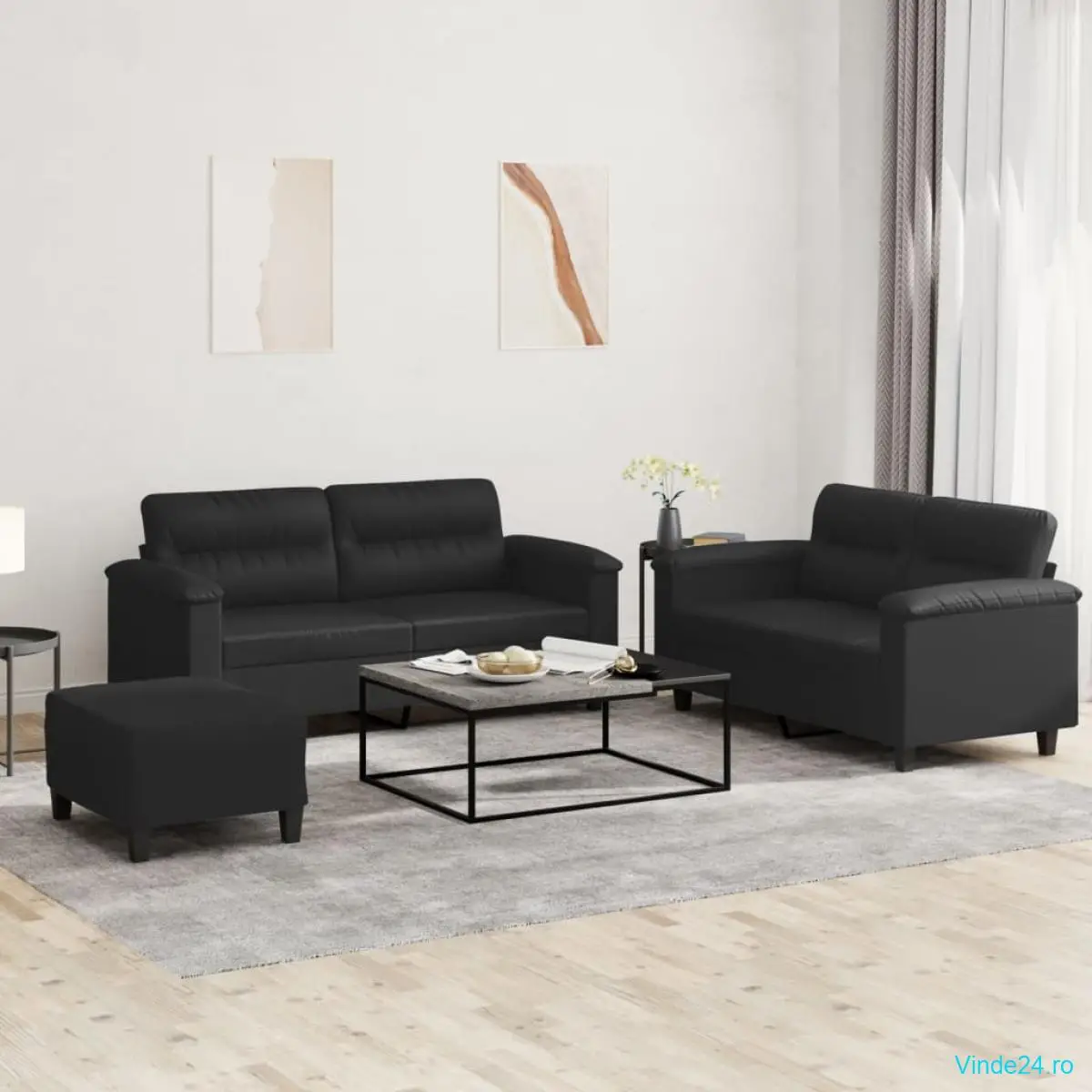 vidaXL Set de canapele cu perne, 3 piese, negru, piele ecologică