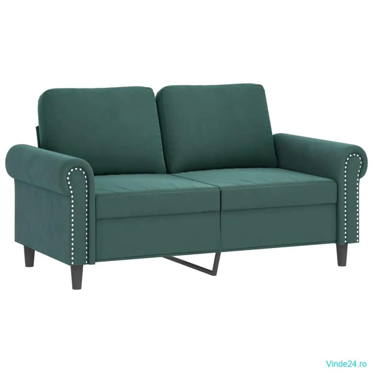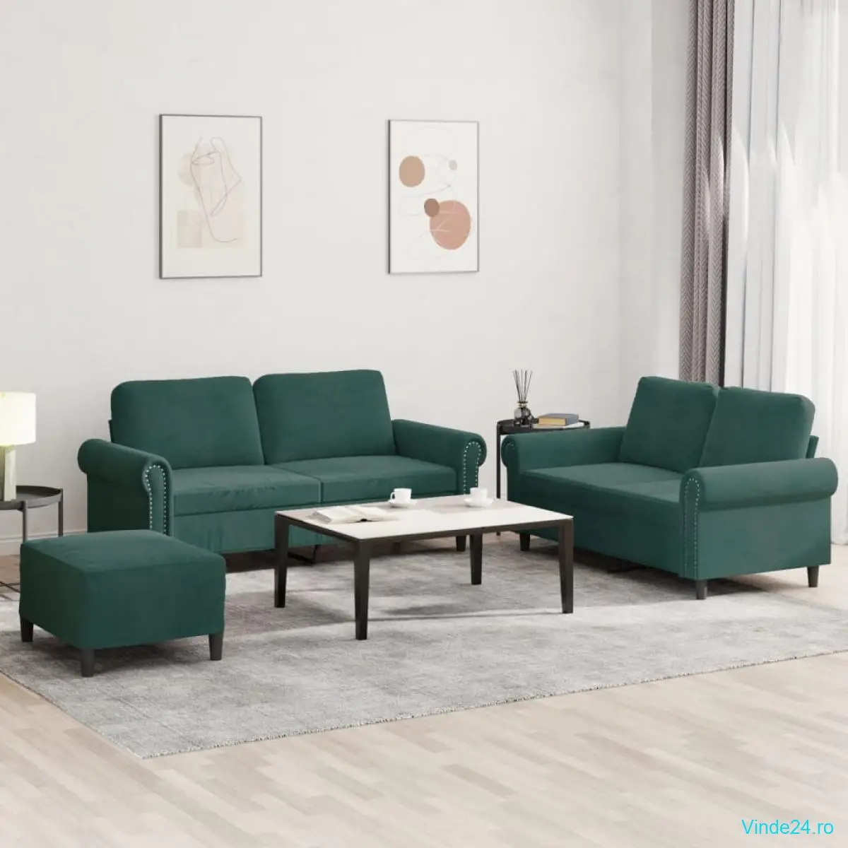 vidaXL Set de canapele cu perne, 3 piese, verde închis, catifea