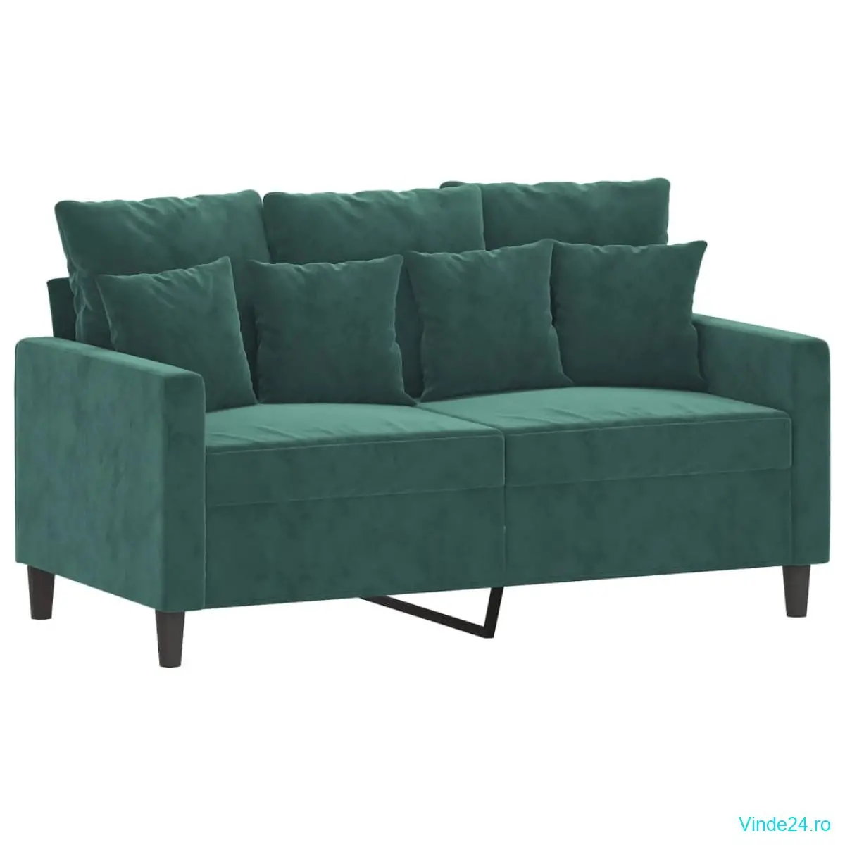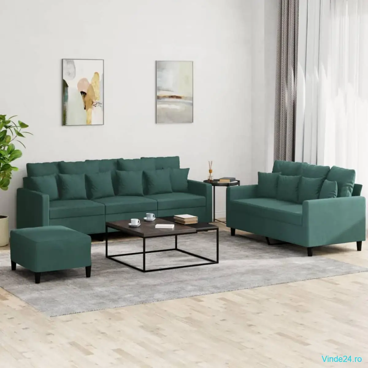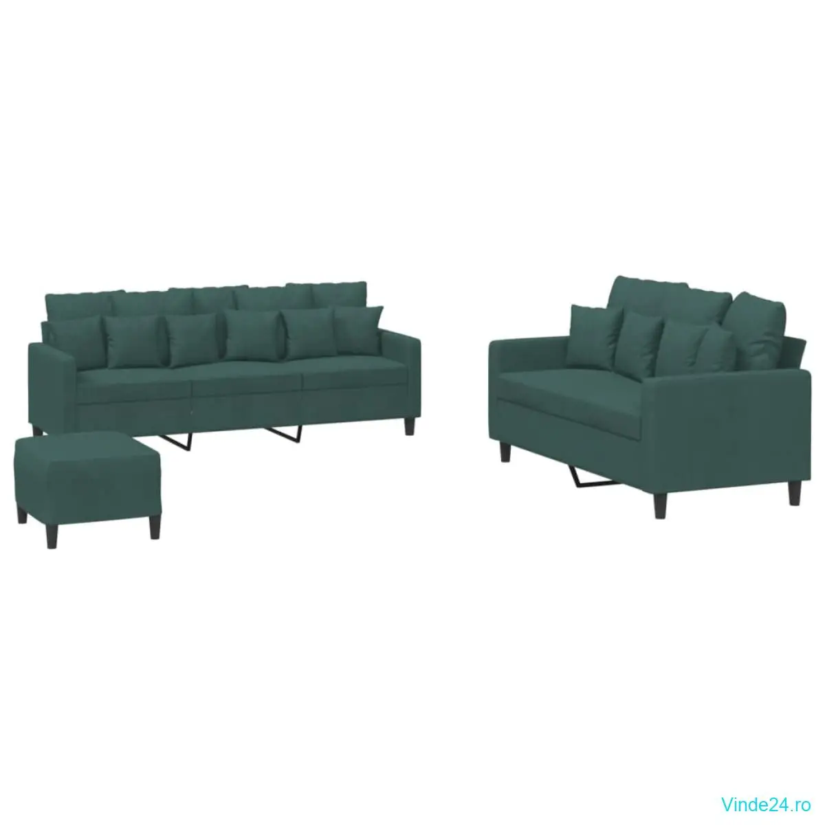 vidaXL Set de canapele cu perne, 3 piese, verde închis, catifea