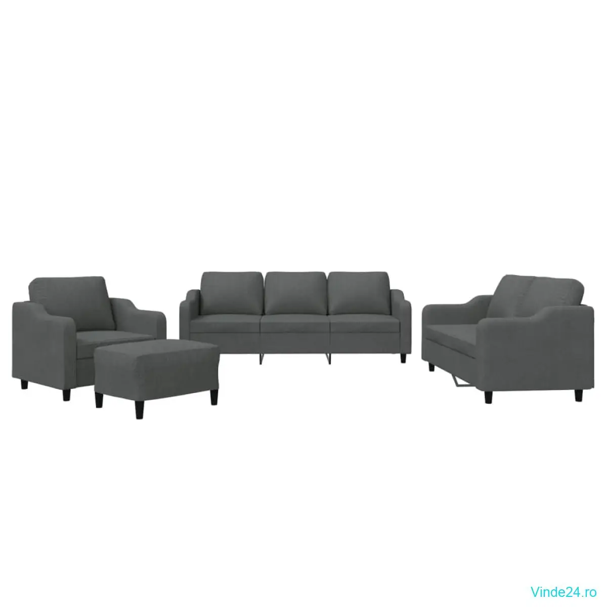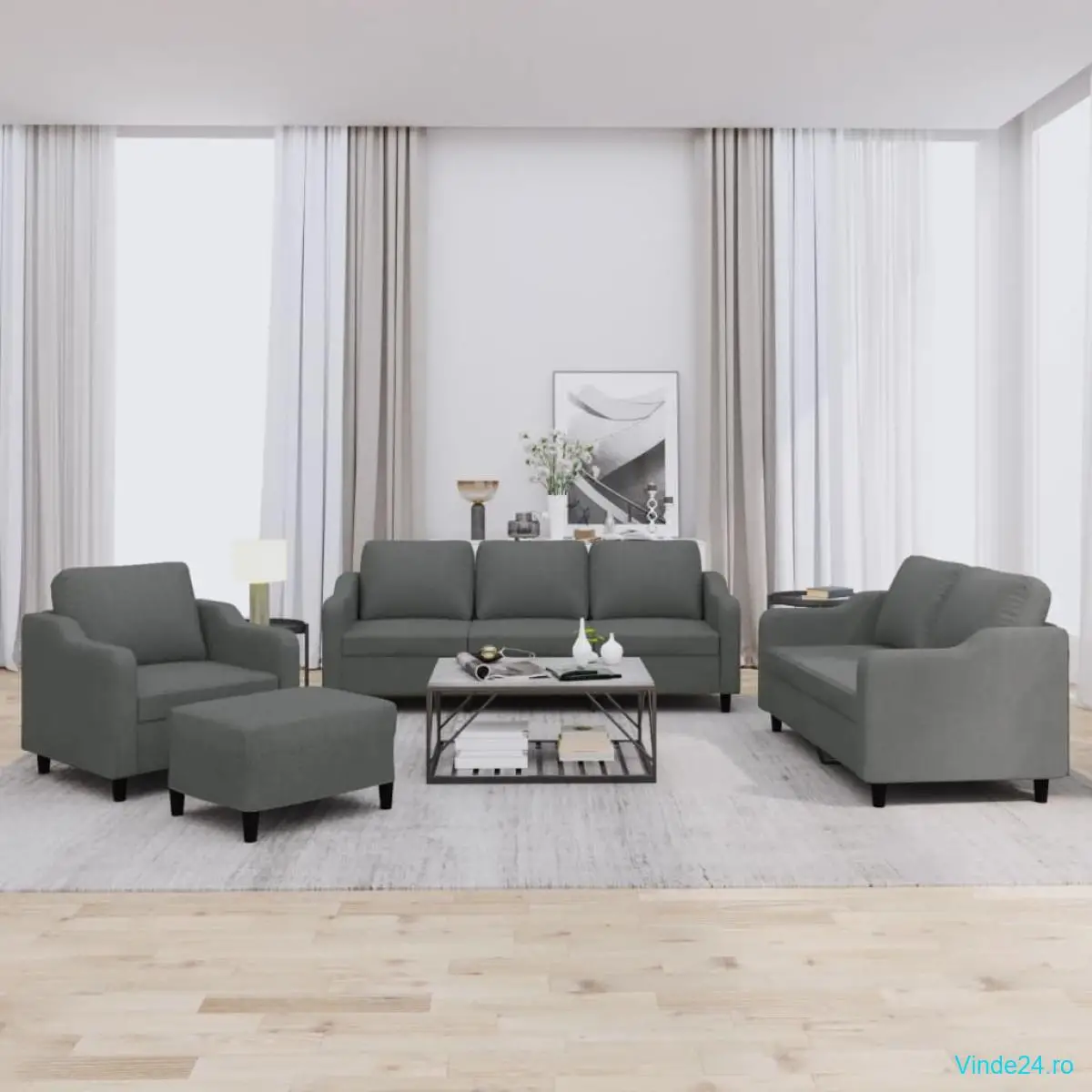 vidaXL Set de canapele cu perne, 4 piese, gri închis, textil