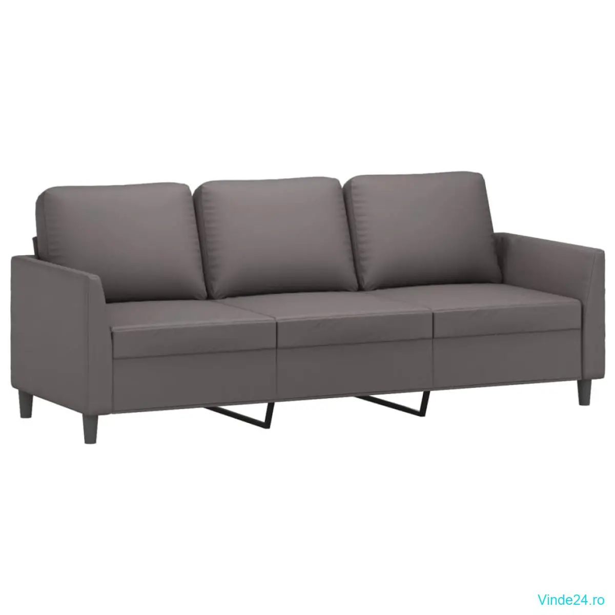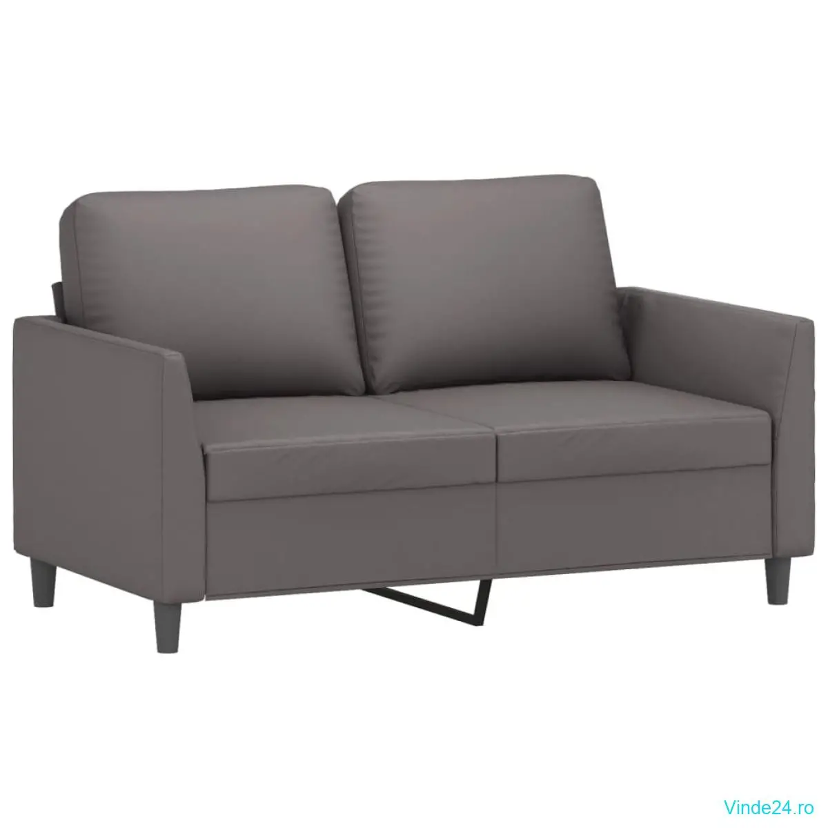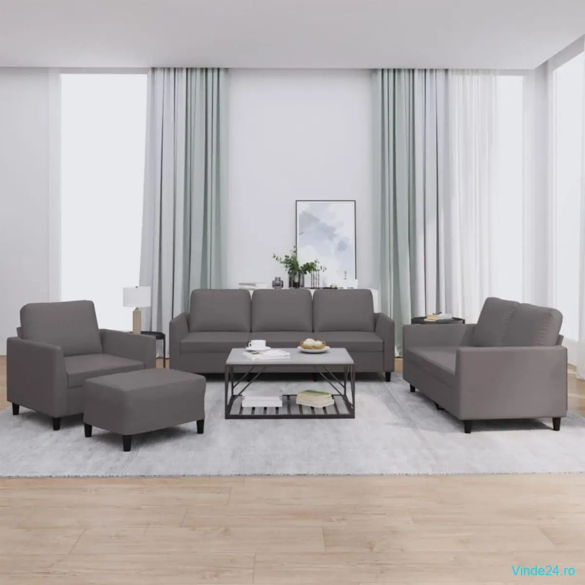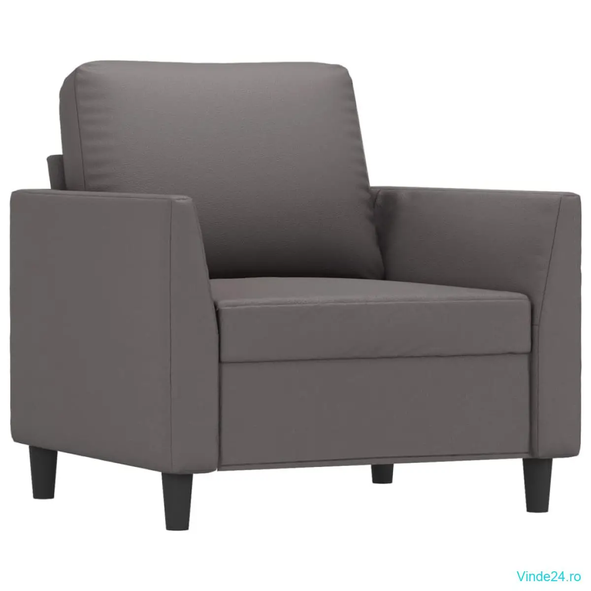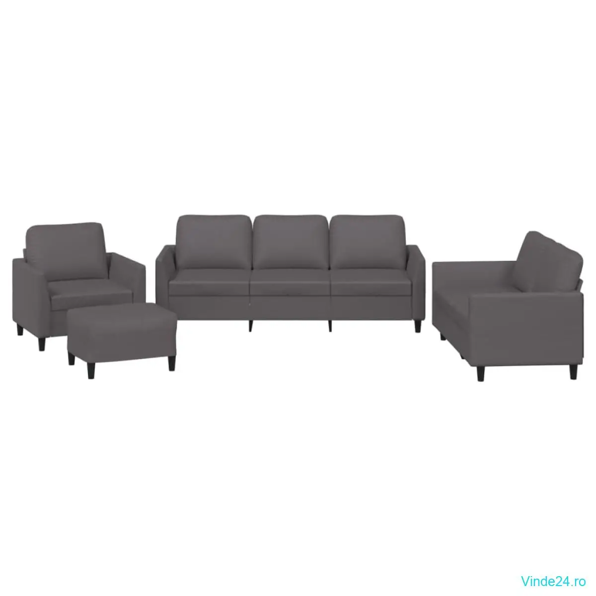 vidaXL Set de canapele cu perne, 4 piese, gri, piele ecologică