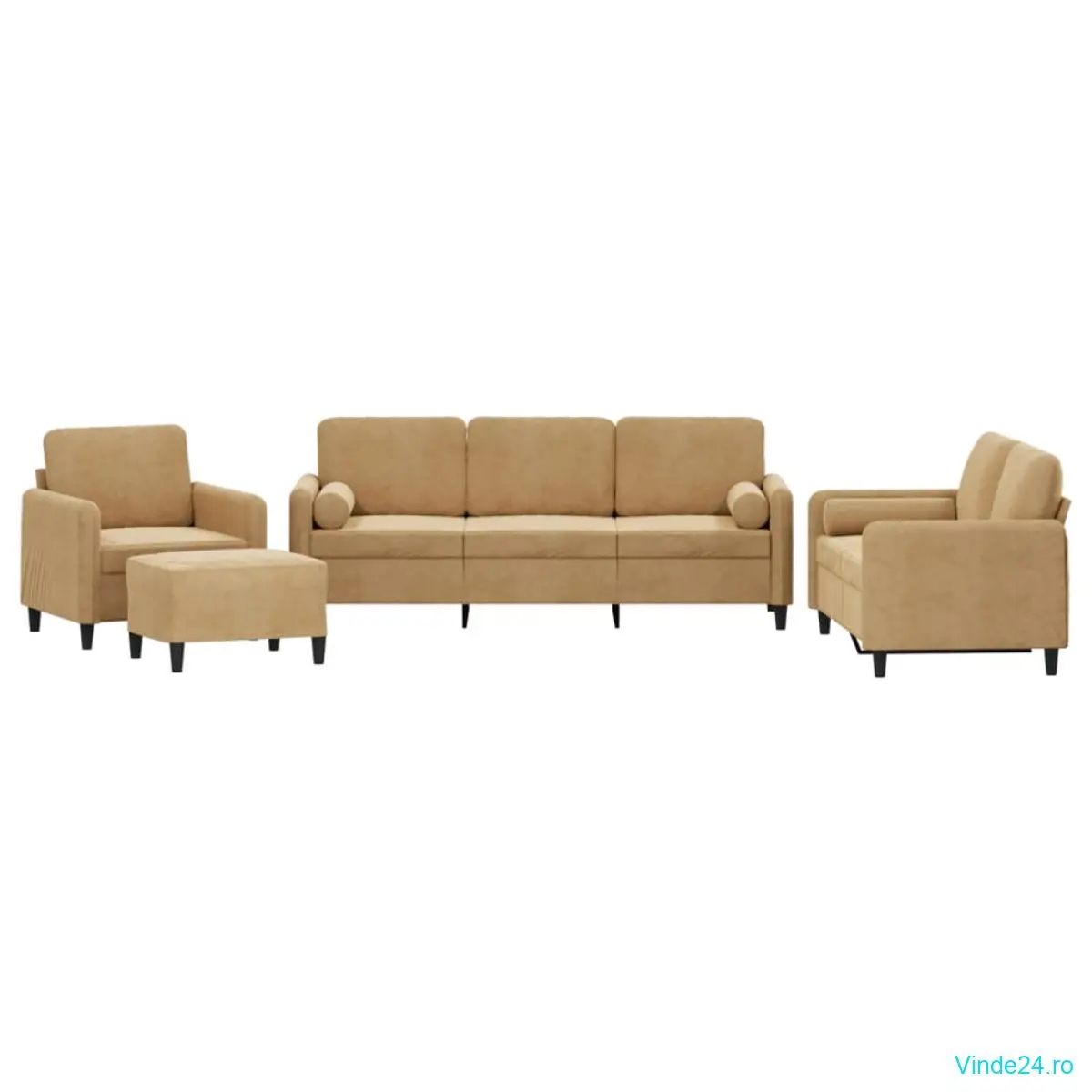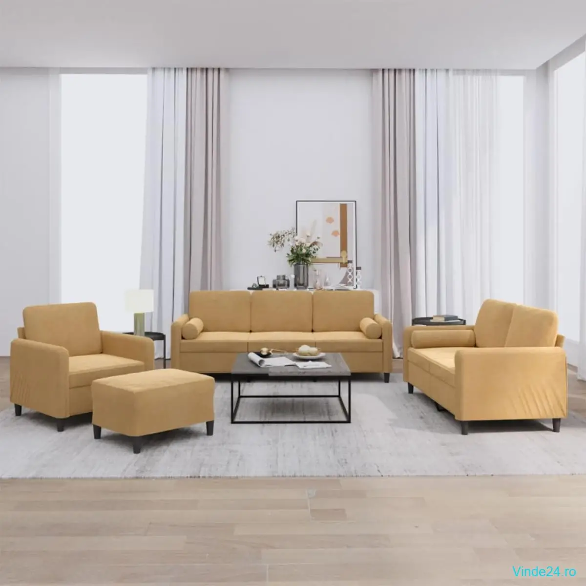 vidaXL Set de canapele cu perne, 4 piese, maro, catifea