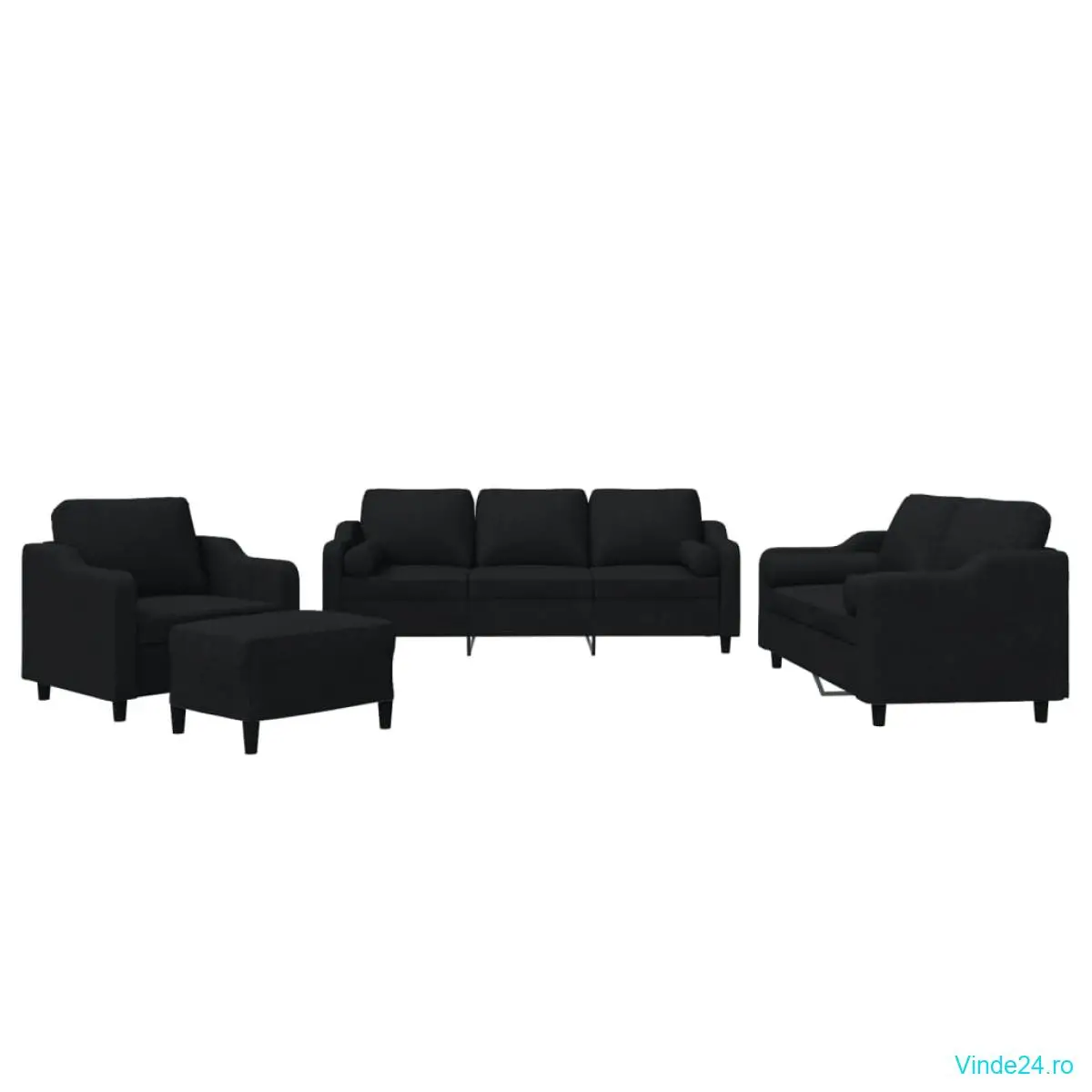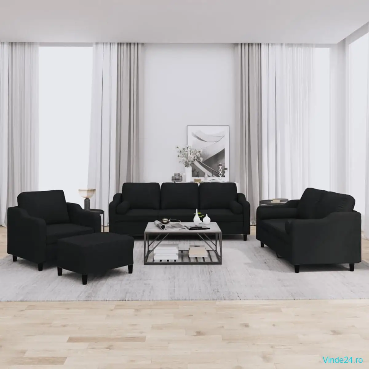 vidaXL Set de canapele cu perne, 4 piese, negru, material textil