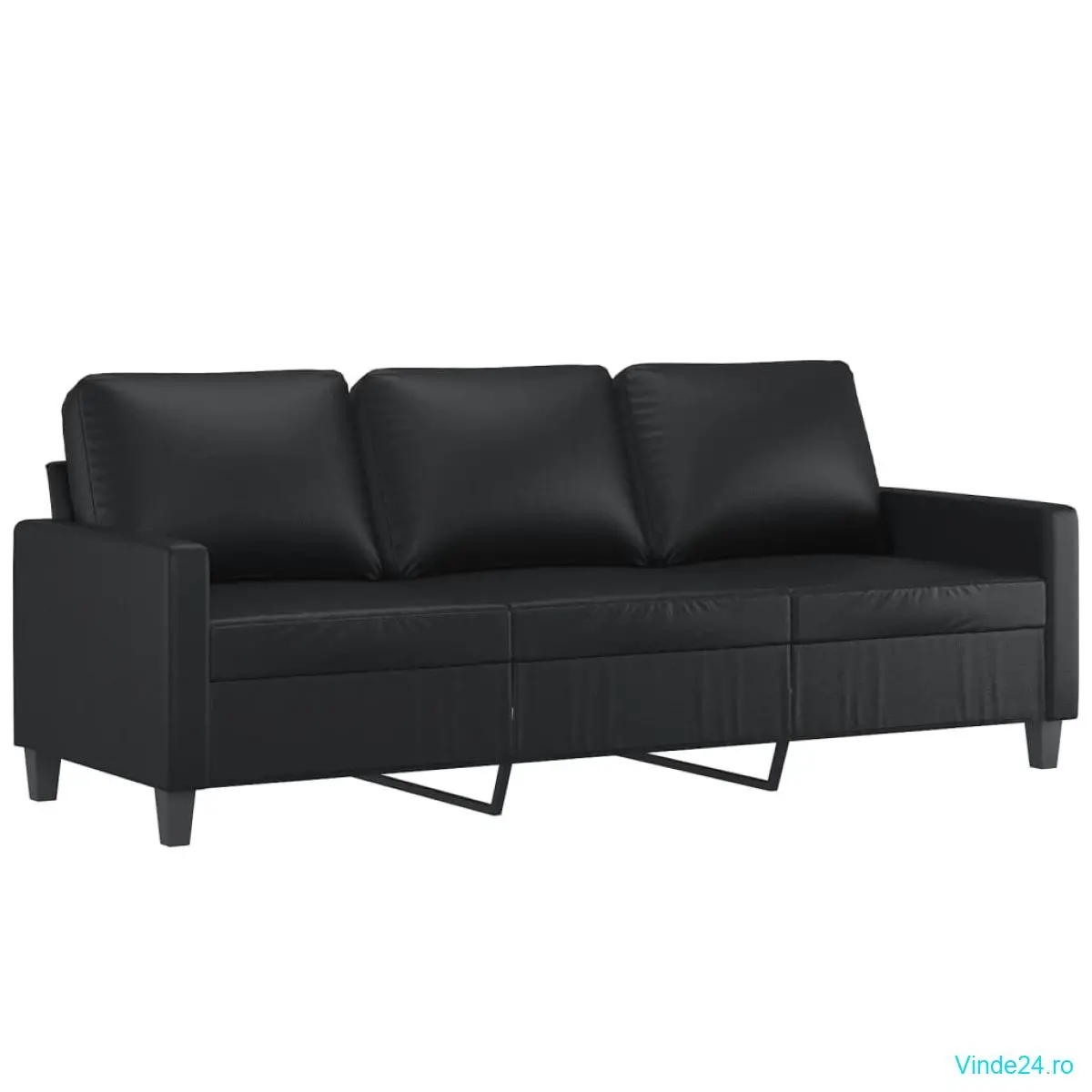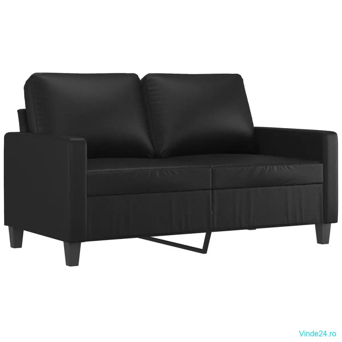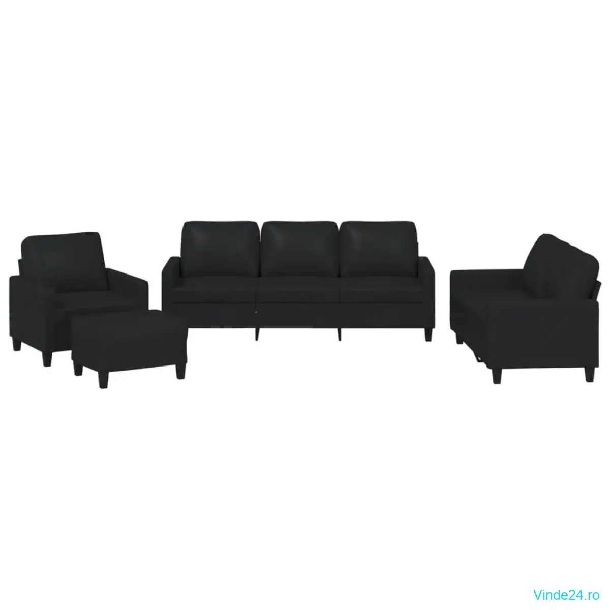 vidaXL Set de canapele cu perne, 4 piese, negru, piele ecologică