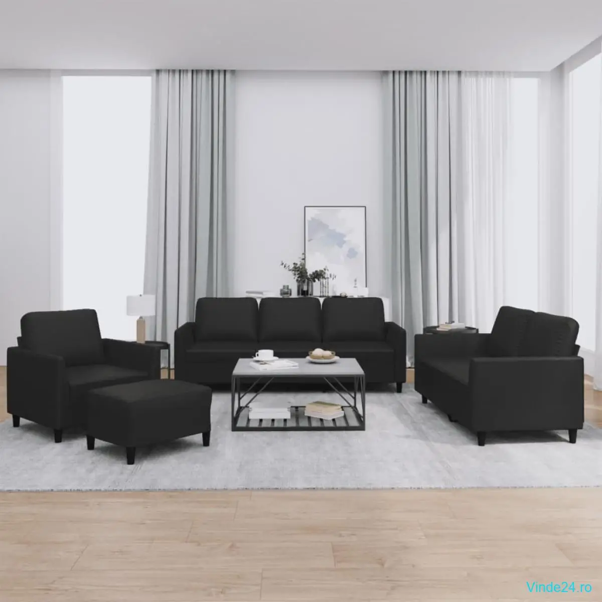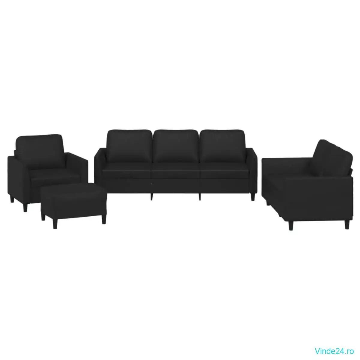 vidaXL Set de canapele cu perne, 4 piese, negru, piele ecologică