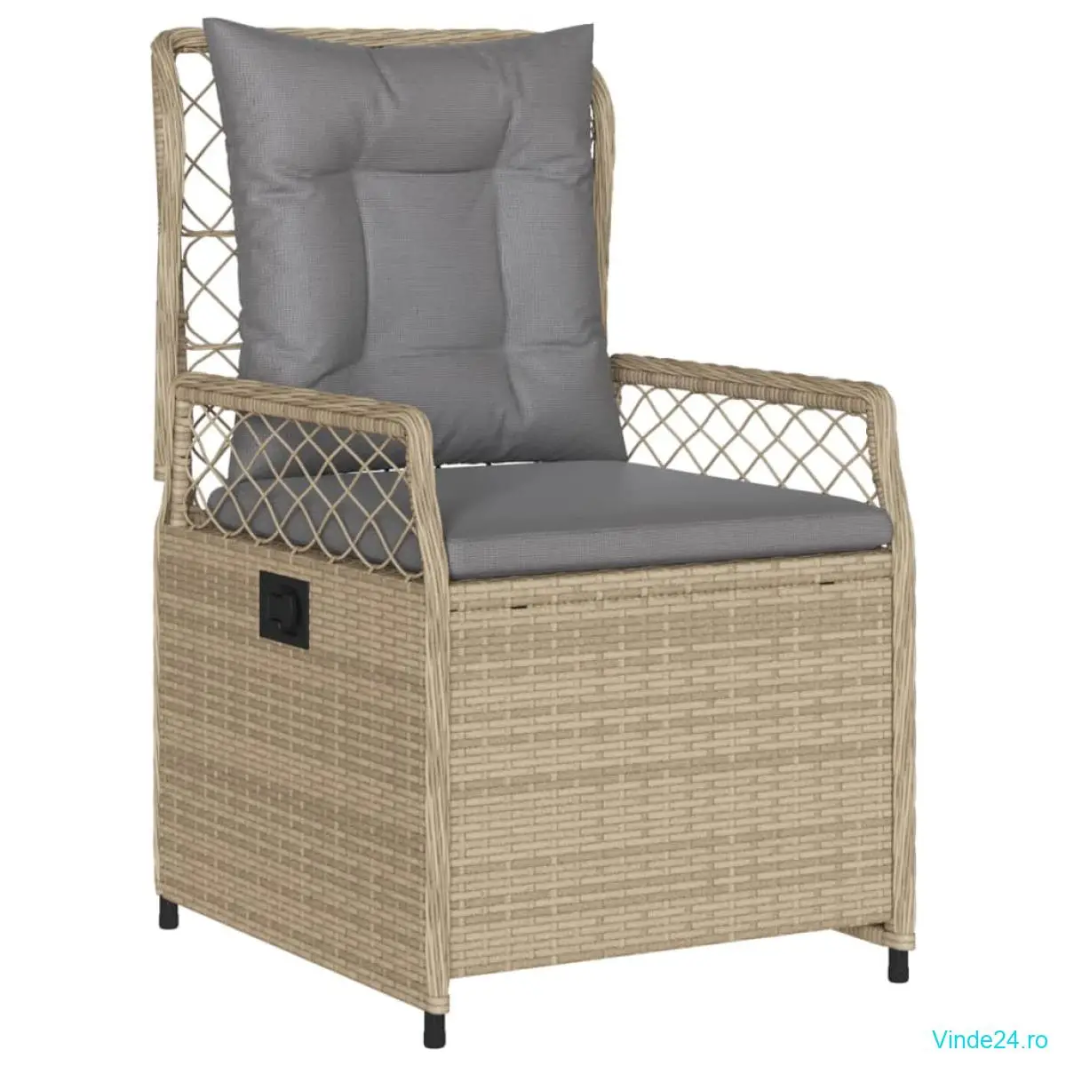 • Spătar reglabil: Acest scaun de grădină are un mâner. Puteți regla spătarul în orice poziție trăgând de mâner și îl puteți readuceți rapid în poziția inițială.